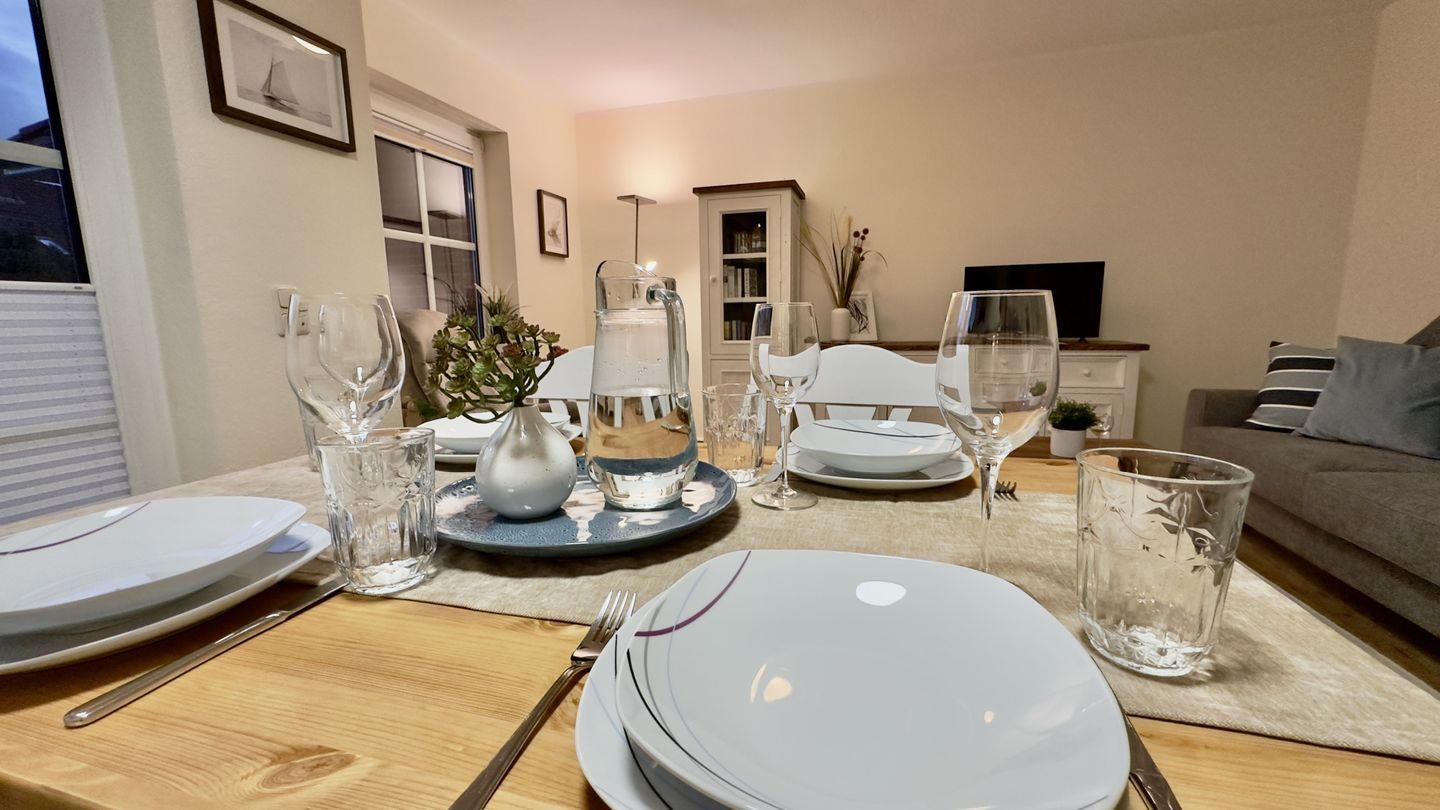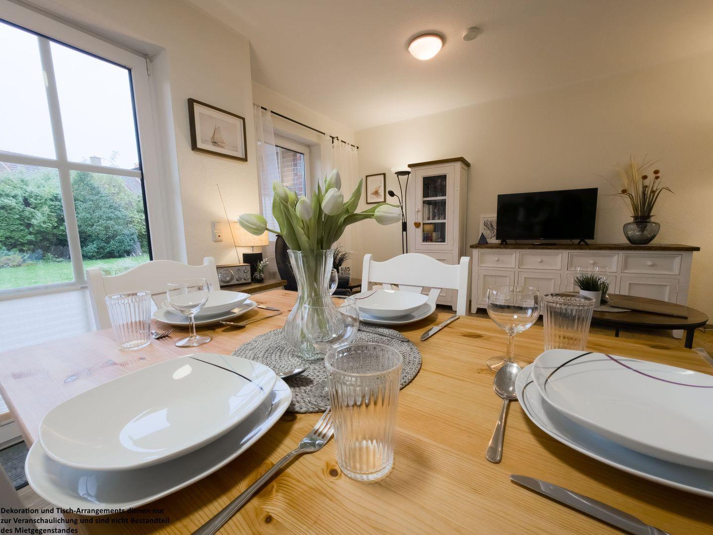 Erleben Sie Erholung pur im Tidehuus am Meer! Unsere barrierearme große, liebevoll im Landhausstil eingerichtete Ferienwohnung bietet Platz für 3 Personen. Helle Räume, ein bequemes Boxspringbett und ein Schlafsofa sorgen für Wohlfühlatmosphäre. Genießen Sie entspannte Stunden auf der schönen Terrasse im Grünen. Die barrierearme Ausstattung macht den Aufenthalt für jeden angenehm.Ein Fahrradraum ist vorhande. Ihr perfekter Rückzugsort für unvergessliche Urlaubsmomente!