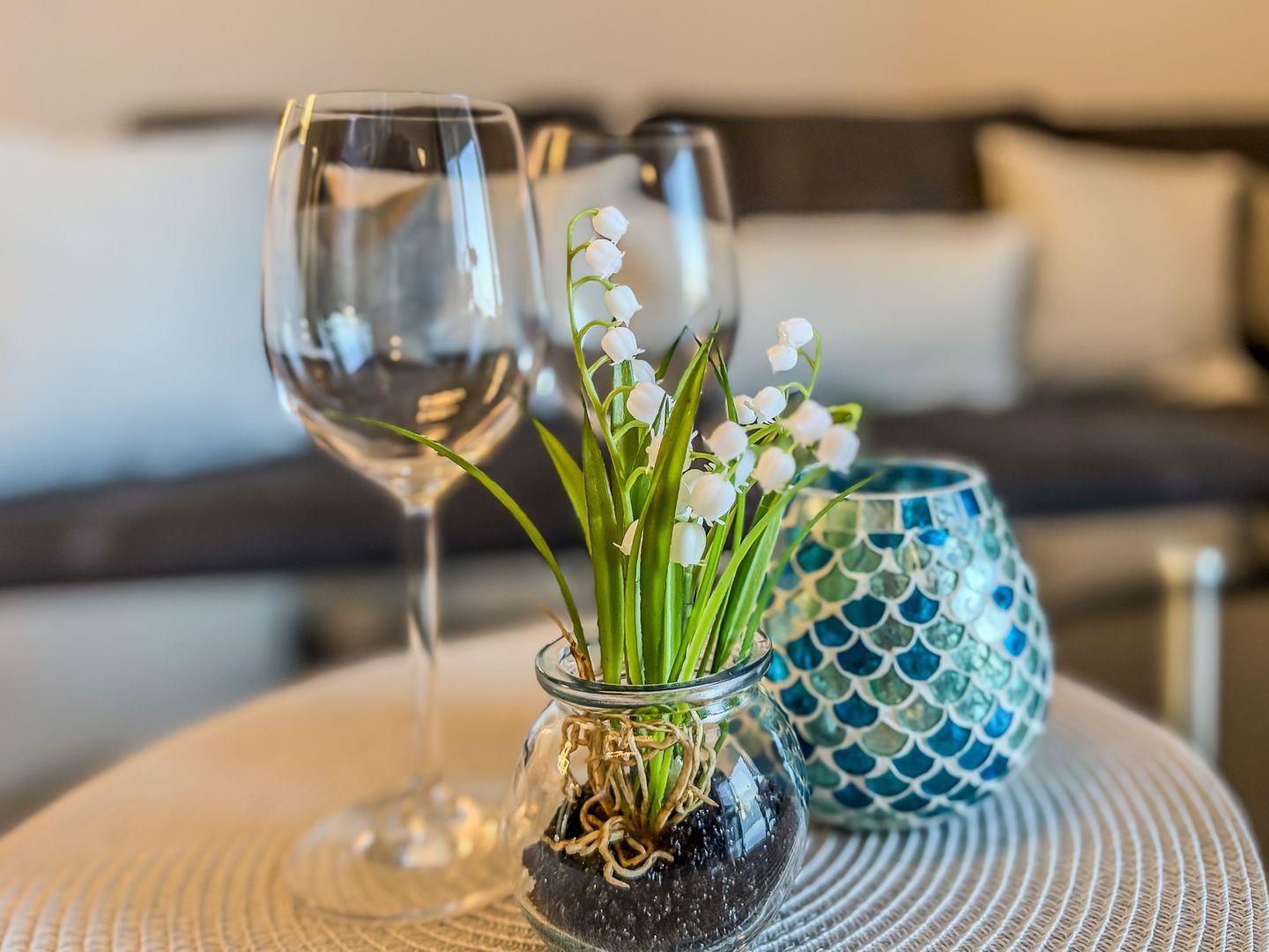 Schon beim Betreten empfängt Sie ein heller, freundlicher Flur, der Sie direkt in Ihre ganz persönliche Auszeit am Meer eintauchen lässt. Die moderne und hochwertig ausgestattete Küche lässt keine Wünsche offen – ob gemeinsames Frühstück, frisch gekochtes Abendessen oder ein schneller Snack zwischendurch: Hier wird Kochen zum Vergnügen. Eine Heißluftfriteuse steht Ihnen ebenfalls zur Verfügung.