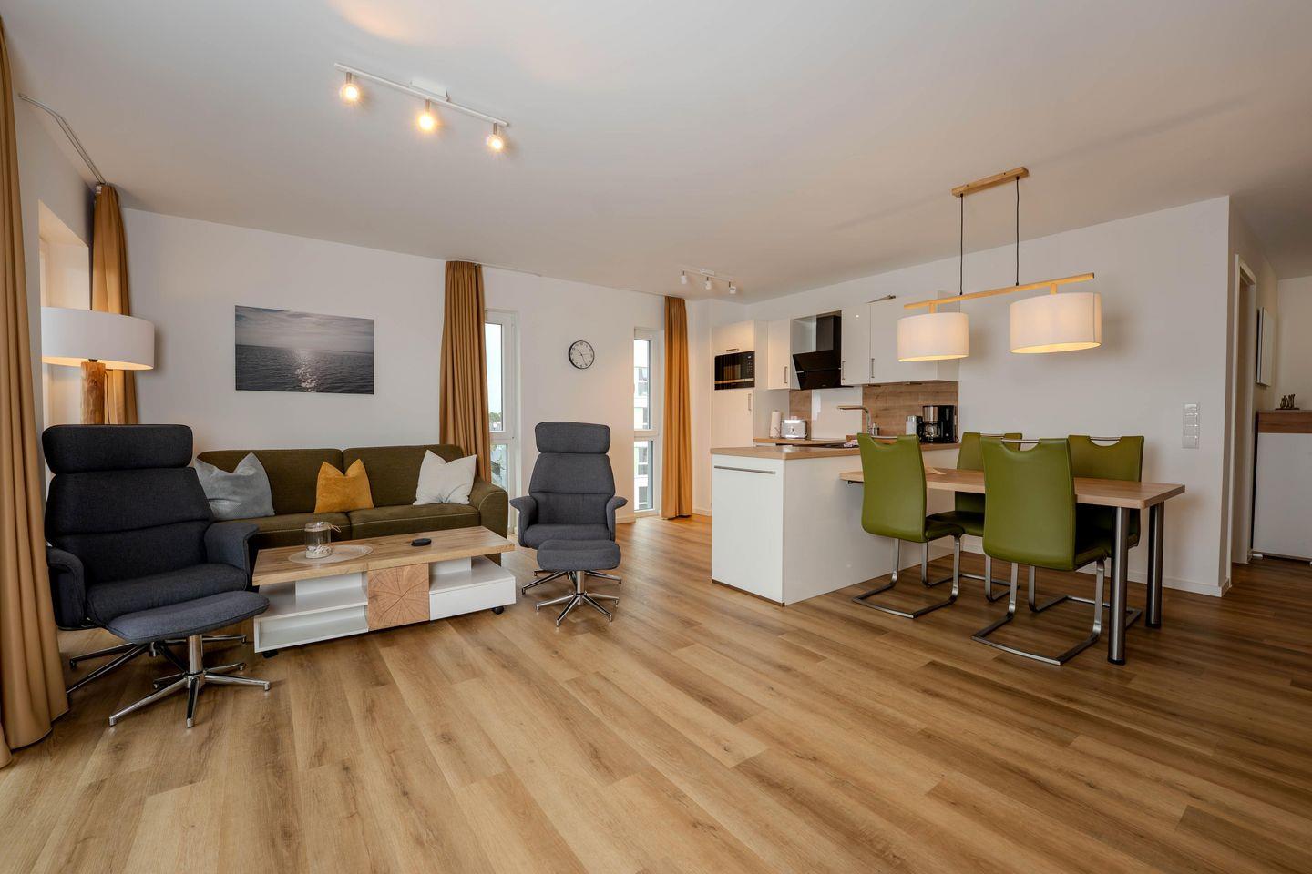 In der „Sonnenseite“ trifft modernes Design auf norddeutsche Gemütlichkeit. Jede Ecke ist so gestaltet, dass Ihr Euch sofort angekommen fühlt – mit viel Platz zum Entspannen und Zusammensein. Auch Euer vierbeiniger Begleiter ist bei uns herzlich willkommen.