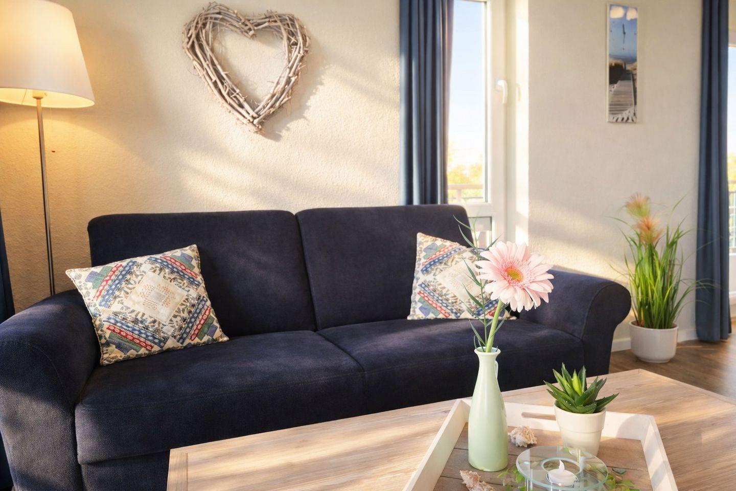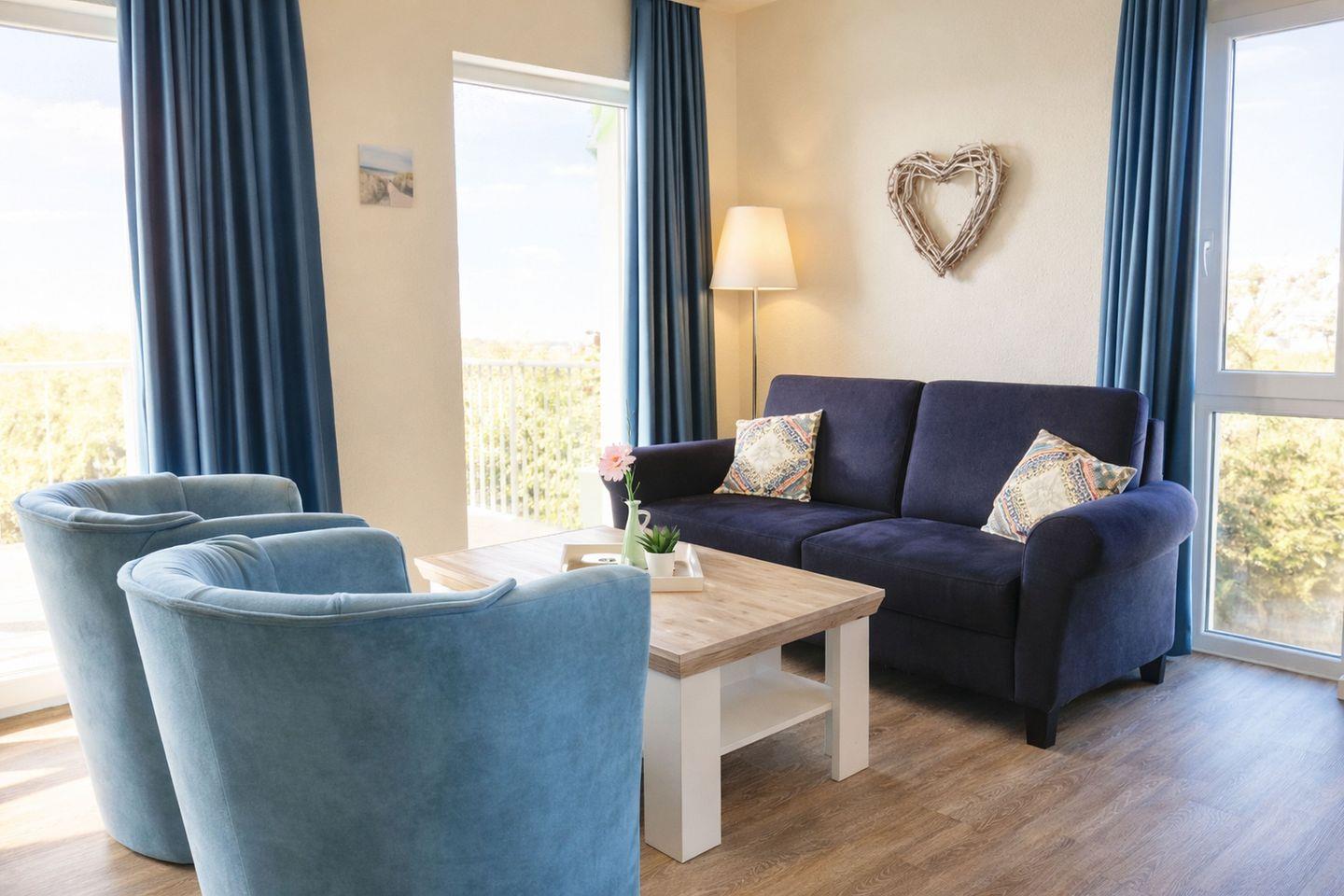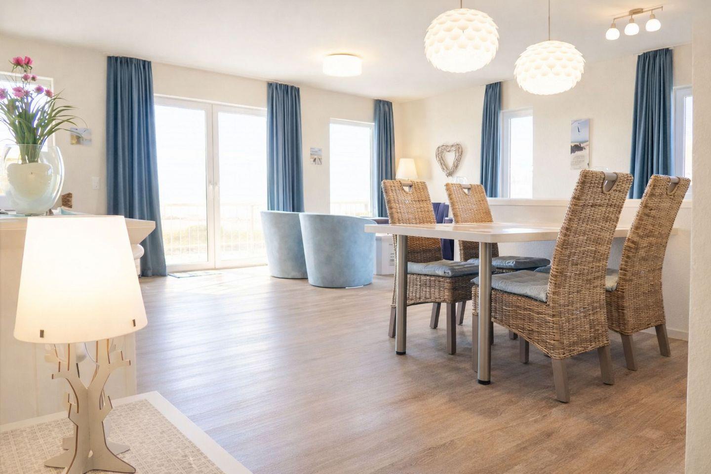 Exklusive Ferienwohnung Nordseeglück in Schillig mit Sauna, Balkon und direkter Strandlage bietet Komfort für vier Personen.