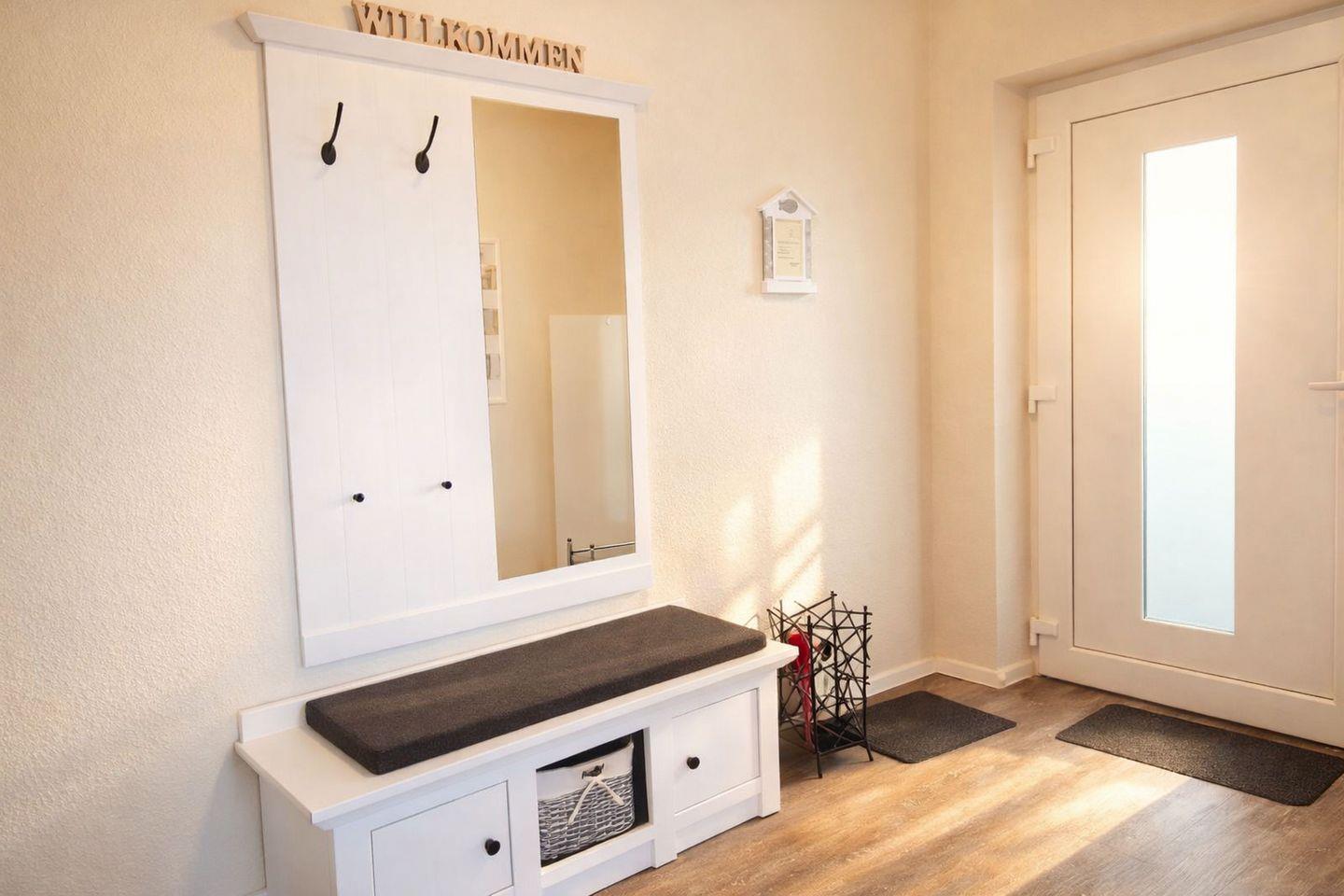 Die Ferienwohnung ist barrierefrei über einen Aufzug erreichbar und mit Fußbodenheizung ausgestattet. Ein eigener PKW-Stellplatz sowie ein kleiner Safe mit programmierbarem Code für Ihre Wertsachen stehen Ihnen ebenfalls zur Verfügung. Während der Saison können Sie zudem einen kostenfreien Strandkorb nutzen.