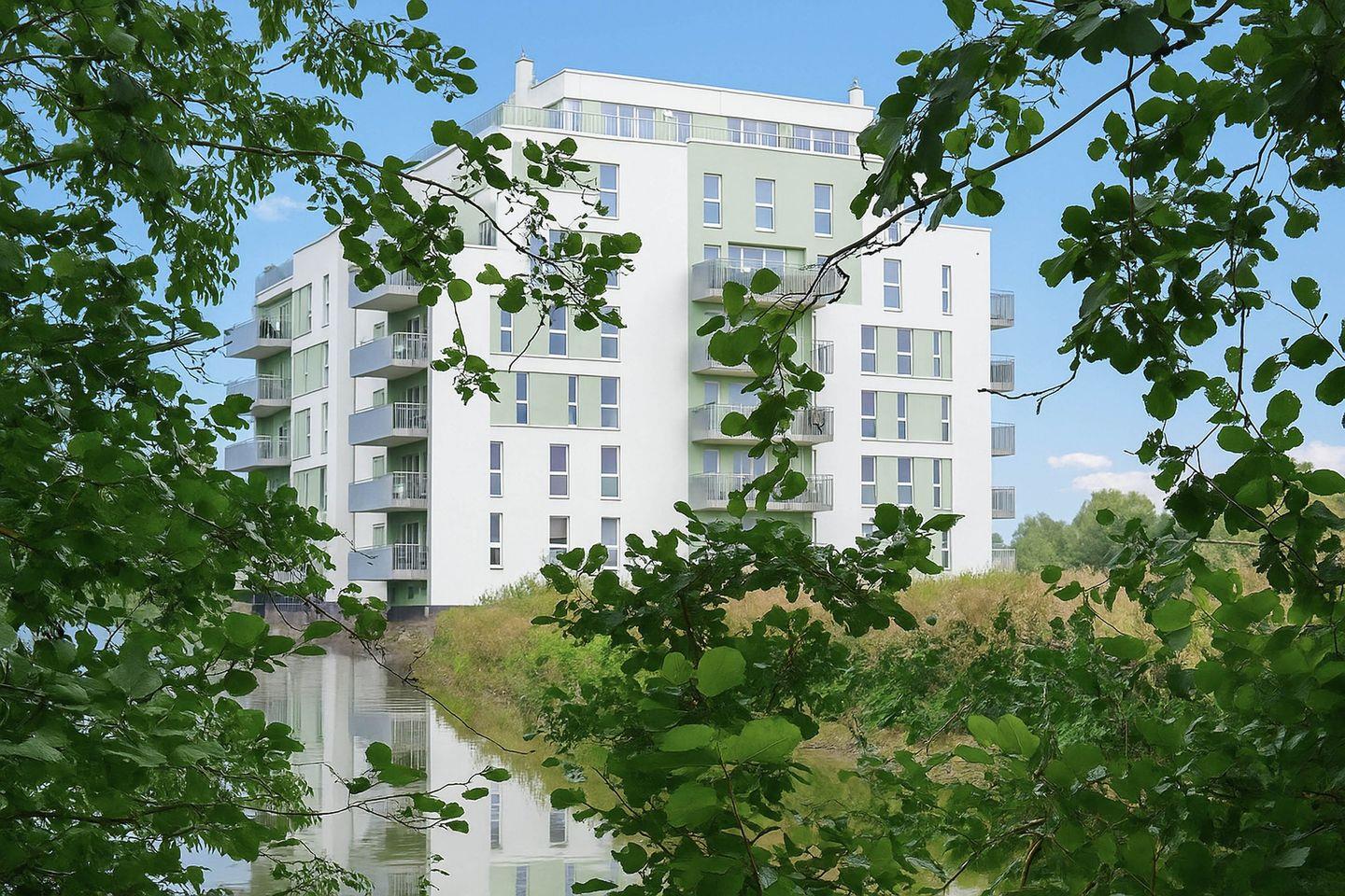 Ein besonderes Highlight ist das großzügige Badezimmer mit privater Sauna, ebenerdiger Regendusche und großer Eckbadewanne, das Ihnen zu jeder Jahreszeit wohltuende Entspannung ermöglicht. Zusätzlich lädt der große, möblierte Süd-/West-Balkon zum Verweilen ein. Von hier aus genießen Sie den Blick auf die Graft und ins Grüne sowie – von der westlichen Balkonecke und den seitlichen Fenstern der Wohnung – einen schönen, seitlichen Meerblick bis hin zu den Inseln Wangerooge und Minsener Oog.