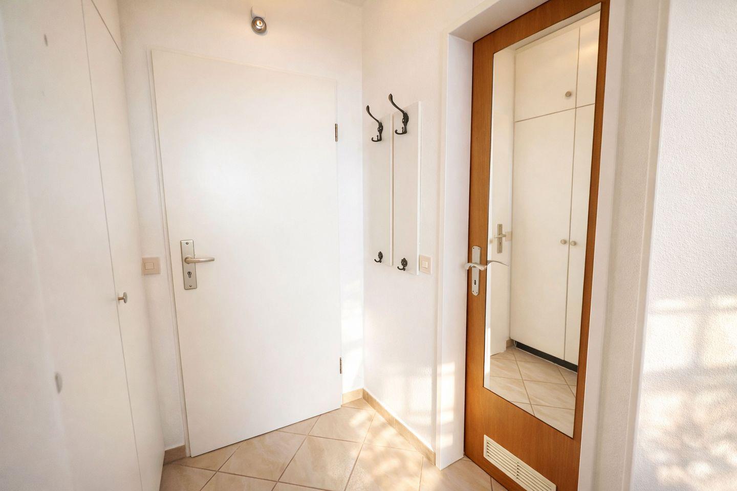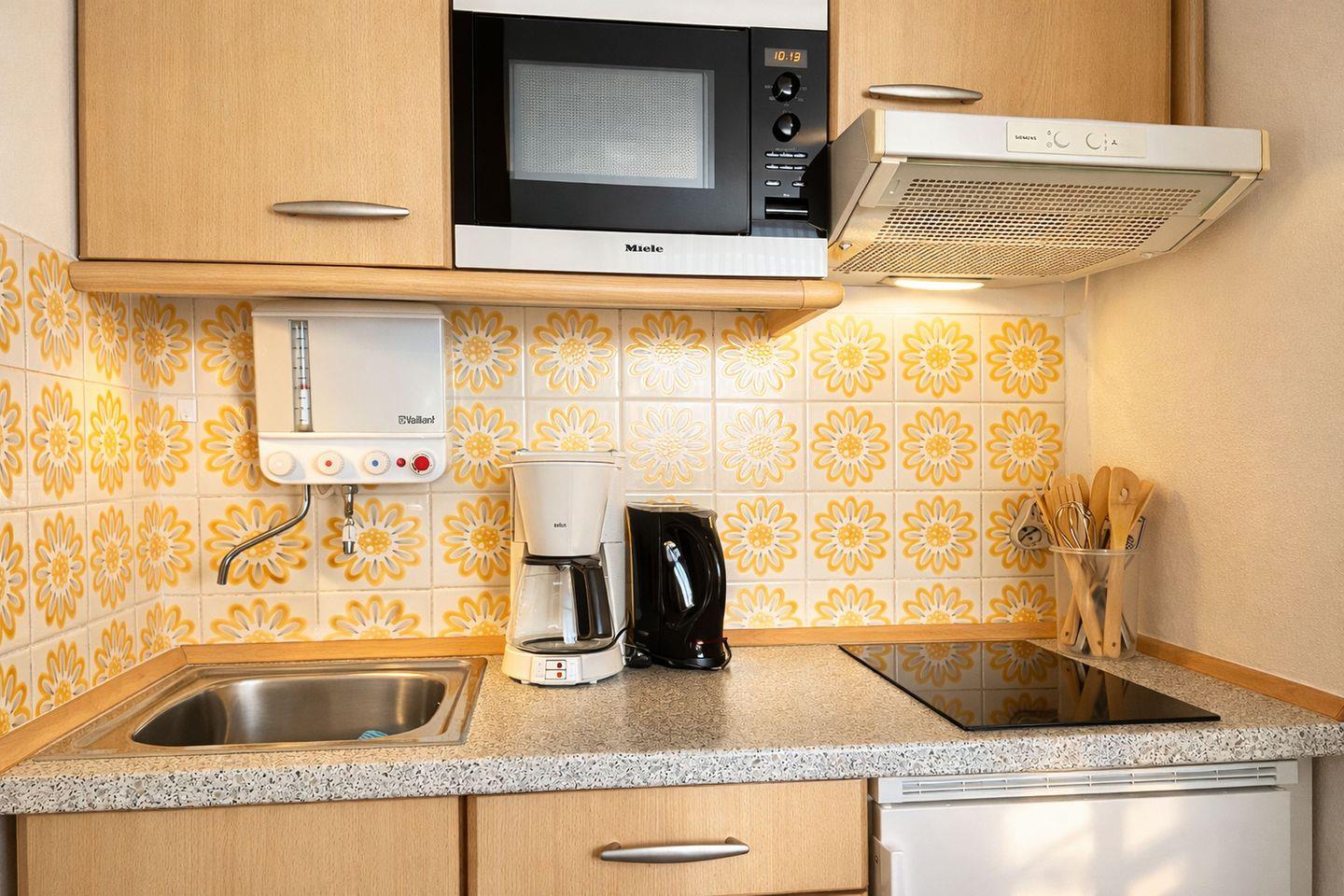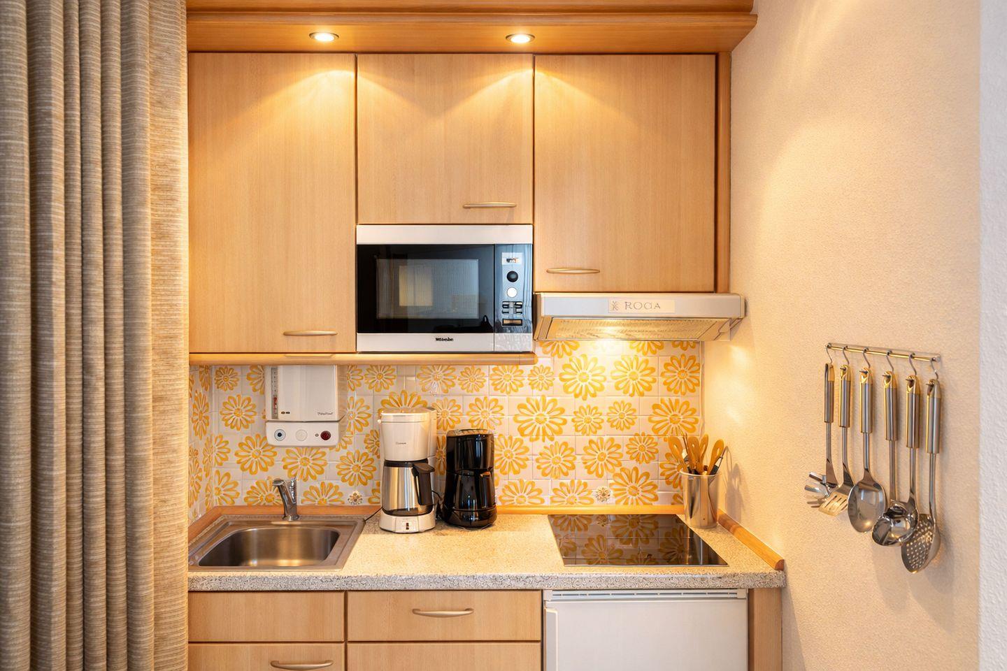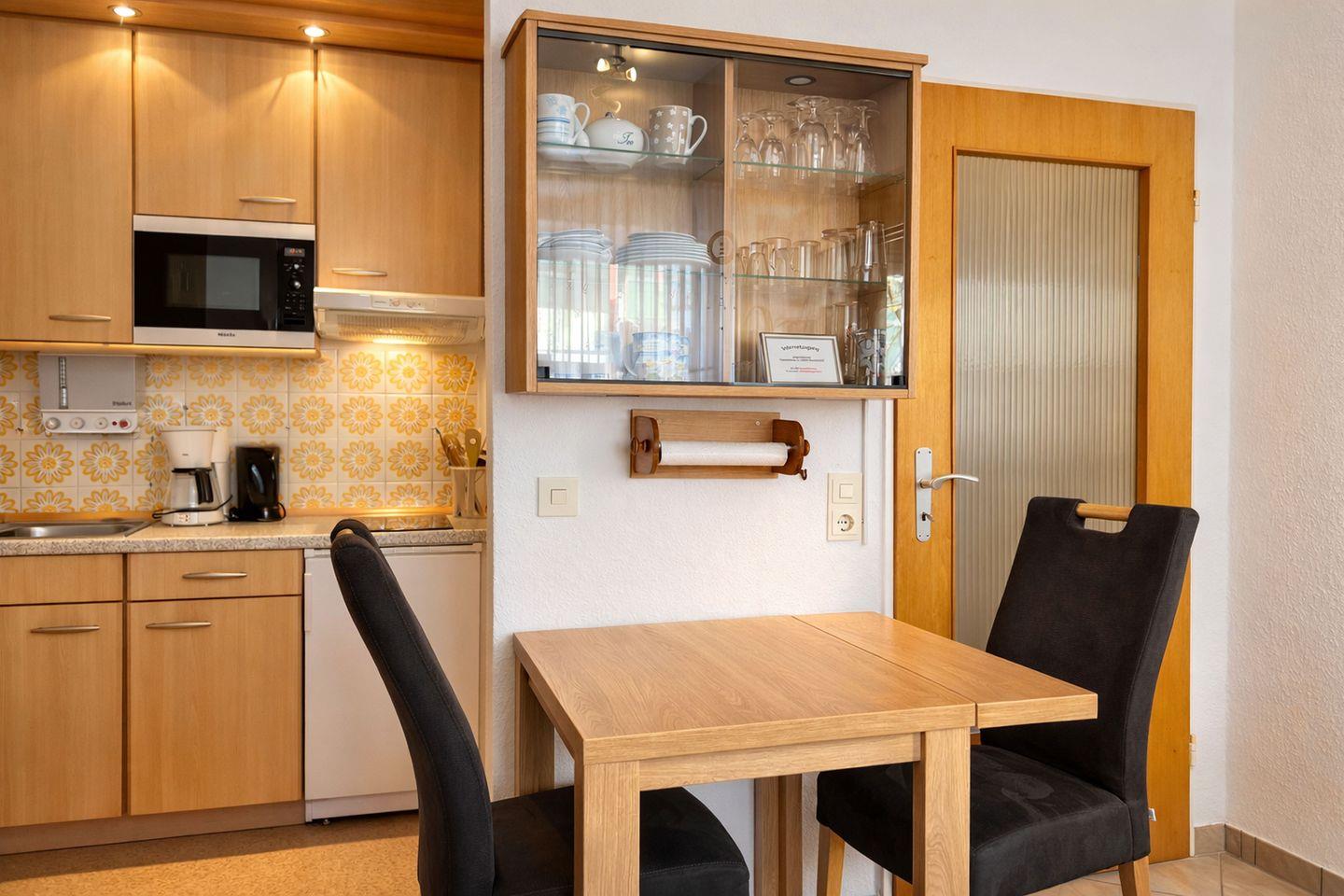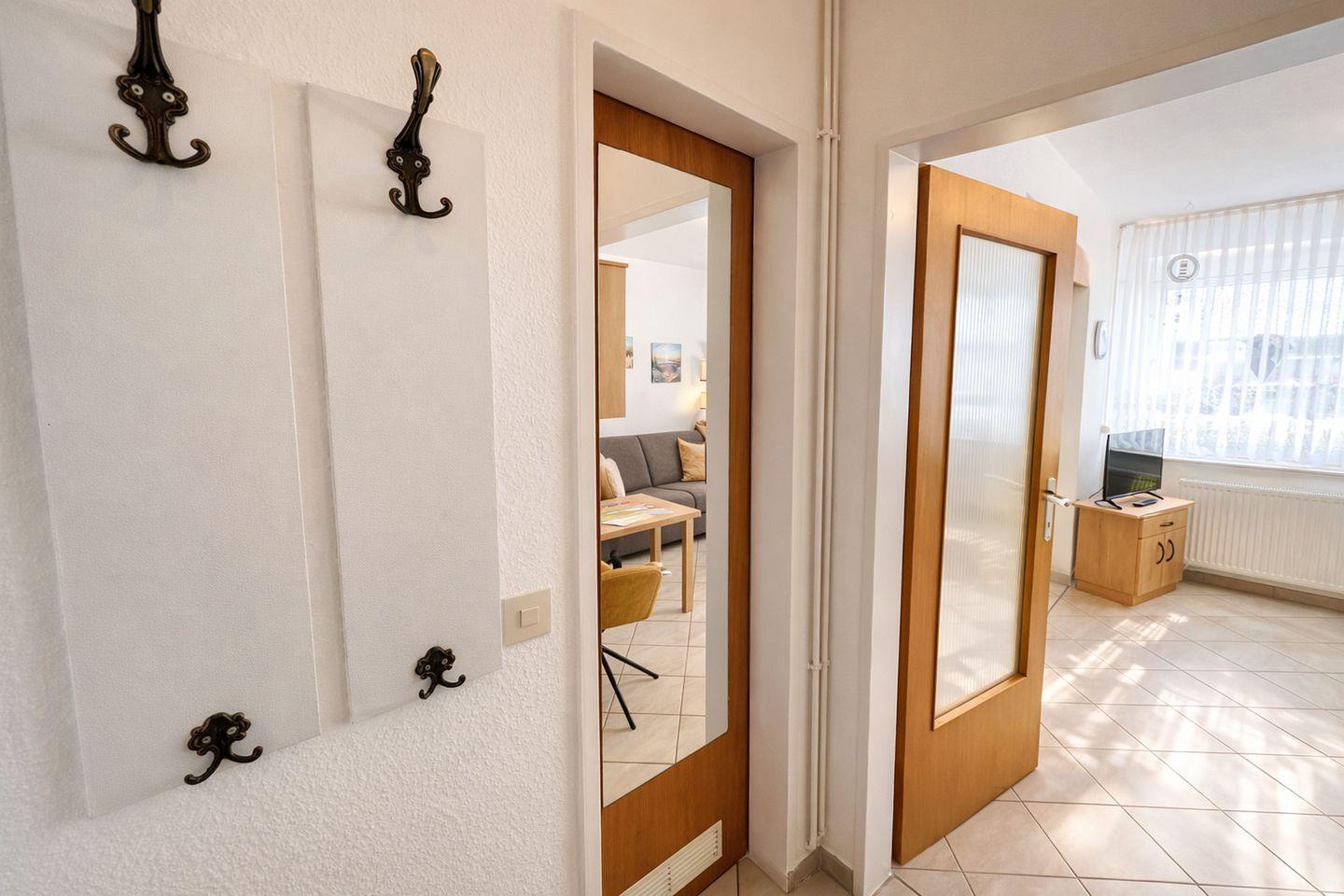 Die Wohnung überzeugt durch ihre durchdachte Raumaufteilung und eine freundliche Ausstattung. Sämtliche Böden sind gefliest und verleihen den Räumen ein modernes und pflegeleichtes Ambiente. Die Pantryküche ist harmonisch an den Wohnbereich angegliedert und funktional ausgestattet. Sie verfügt über ein Ceranfeld mit zwei Kochfeldern, eine Mikrowelle, einen Kühlschrank mit Gefrierfach, einen Wasserkocher, einen Toaster sowie weitere praktische Küchenutensilien, sodass eine unkomplizierte Selbstversorgung problemlos möglich ist. Im Wohnbereich lädt ein bequemes Schlafsofa zum Entspannen ein und bietet gleichzeitig eine zusätzliche Schlafmöglichkeit. Für Unterhaltung sorgen ein moderner Flachbildfernseher ein Radio und WLAN, die gemütliche Abende abrunden. Das separate Schlafzimmer ist mit zwei Einzelbetten ausgestattet und bietet erholsame Ruhe. Sowohl das Wohn- als auch das Schlafzimmer lassen sich dank elektrischer Außenjalousien vollständig abdunkeln, was zu einem angenehmen Schlafkomfort beiträgt. Das Badezimmer bietet ausreichend Stauraum und ist mit einer Dusche sowie einem WC ausgestattet. Ein besonderes Highlight ist der Balkon, auf dem Sie bei einer Tasse Kaffee oder Friesen-Tee die frische Nordseeluft genießen und entspannt in den Tag starten können.