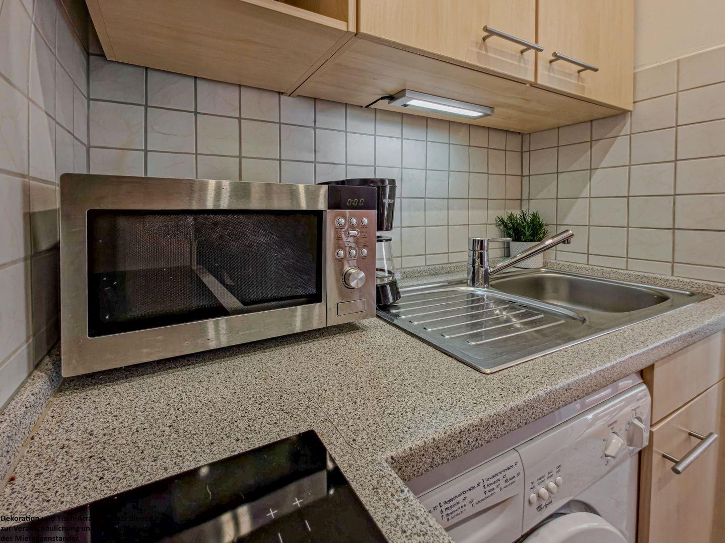 Die kleine, praktische Kochnische ist mit allem ausgestattet, was Sie für die Selbstversorgung im Urlaub benötigen. Eine Waschmaschine sorgt zusätzlich für Komfort während Ihres Aufenthalts.