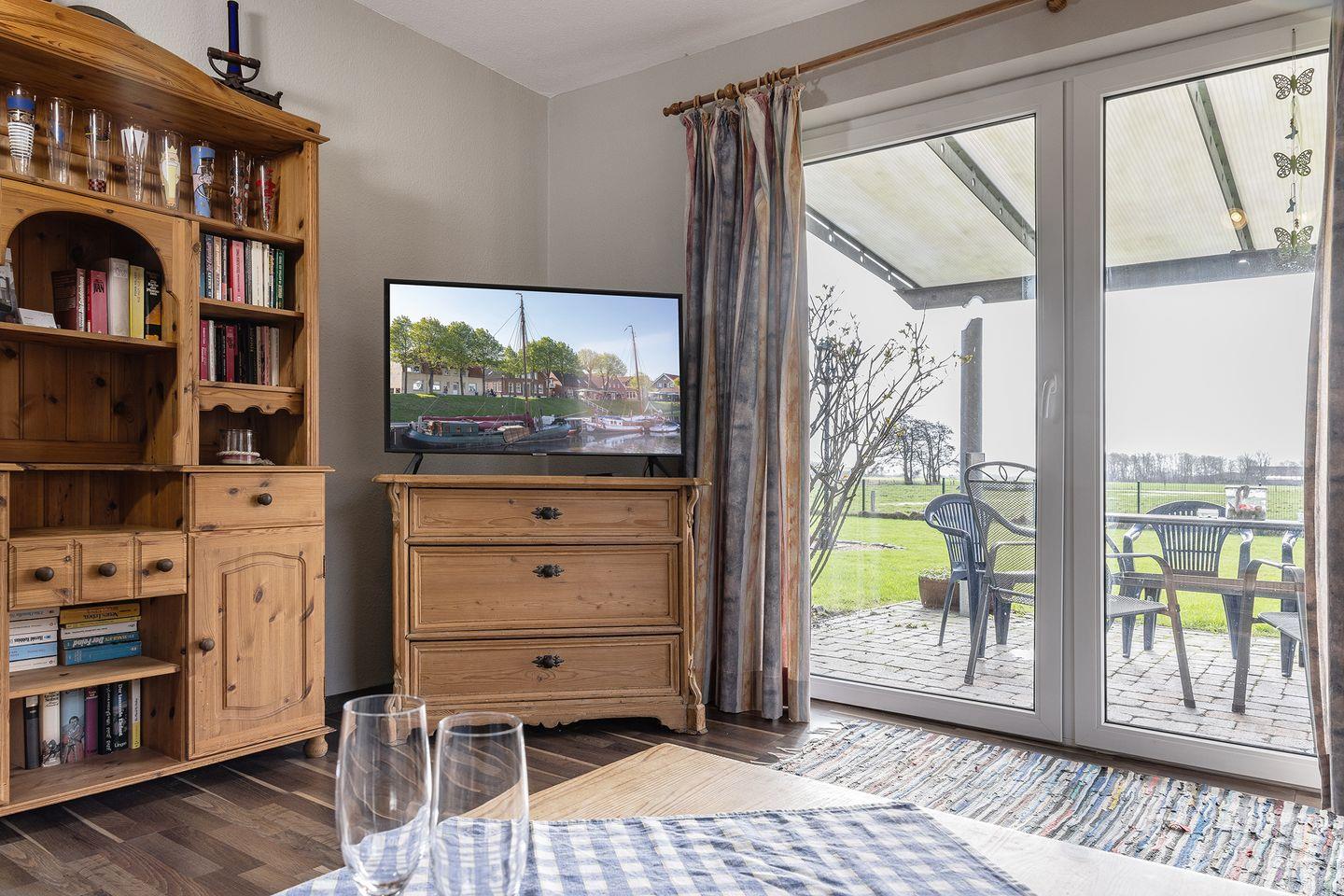 Sowohl das Haus als auch der Ort sind geschichtsträchtig: Die urgemütliche Doppelhaushälfte ist ein ehemaliges Landarbeiterhaus und steht in einer bedeutungsvollen Gegend. Denn die Goldene Linie entstand im 17. Jahrhundert als Grenze zwischen dem Fürstentum Ostfriesland und der Grafschaft Oldenburg in der Harlebucht. Bis zum heutigen Tage bildet sie auf dem Festland die Trennlinie der beiden Landkreise Wittmund und Friesland.