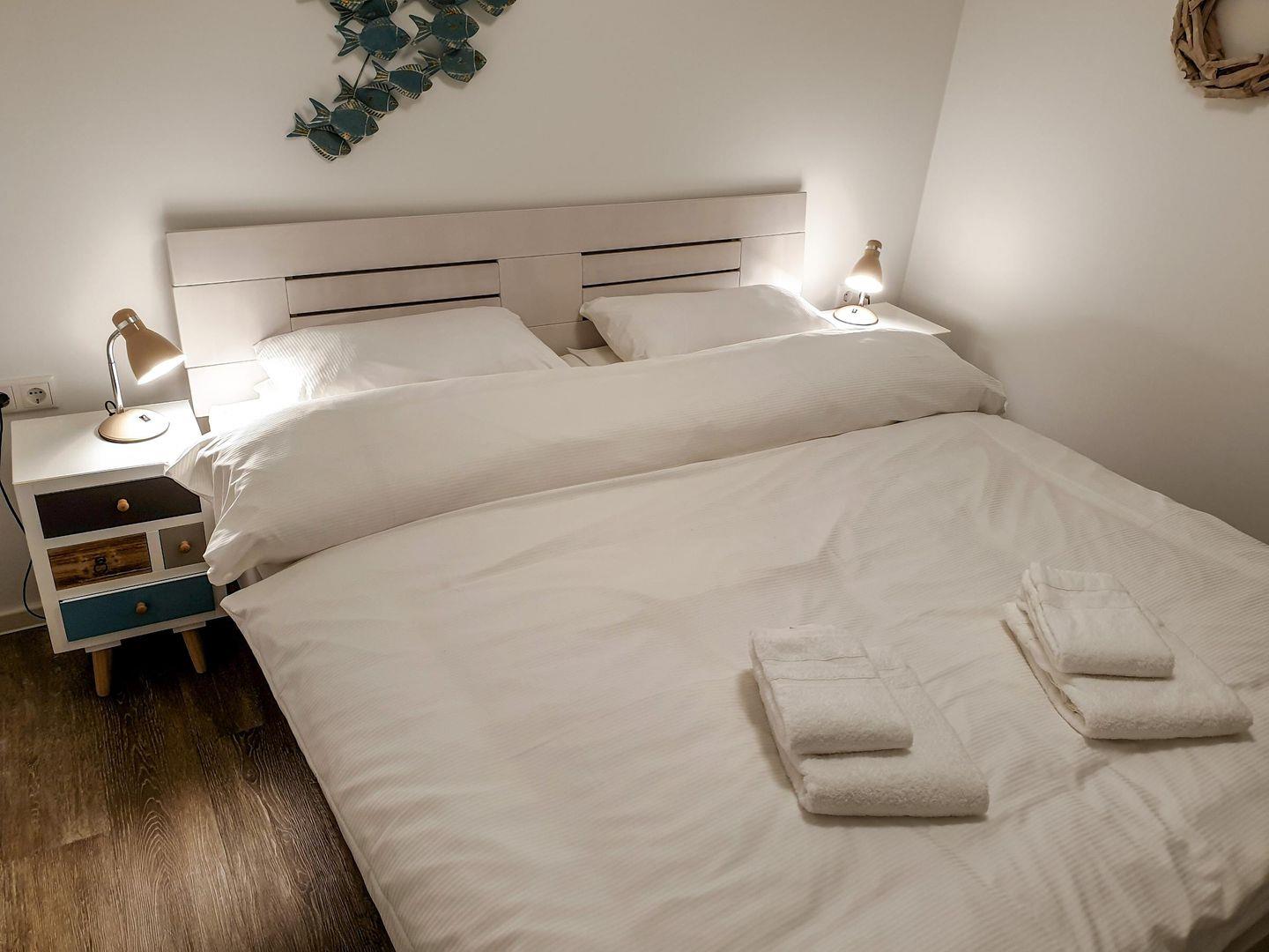 In jedem Schlafzimmer steht Ihnen ein Doppelbett mit Nachtkonsolen, ein Kleiderschrank sowie ein weiterer Fernseher zur Verfügung.