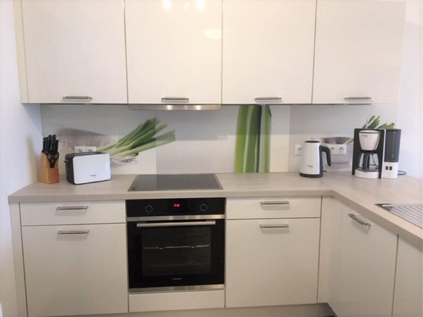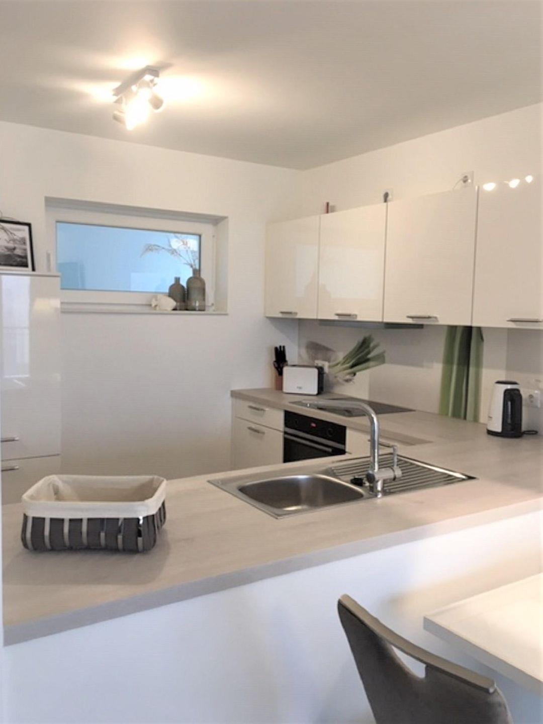 Der Küchenbereich ist modern offen zum Wohn-Essbereich gehalten und mit einer hochwertigen Einbauküche ausgestattet.