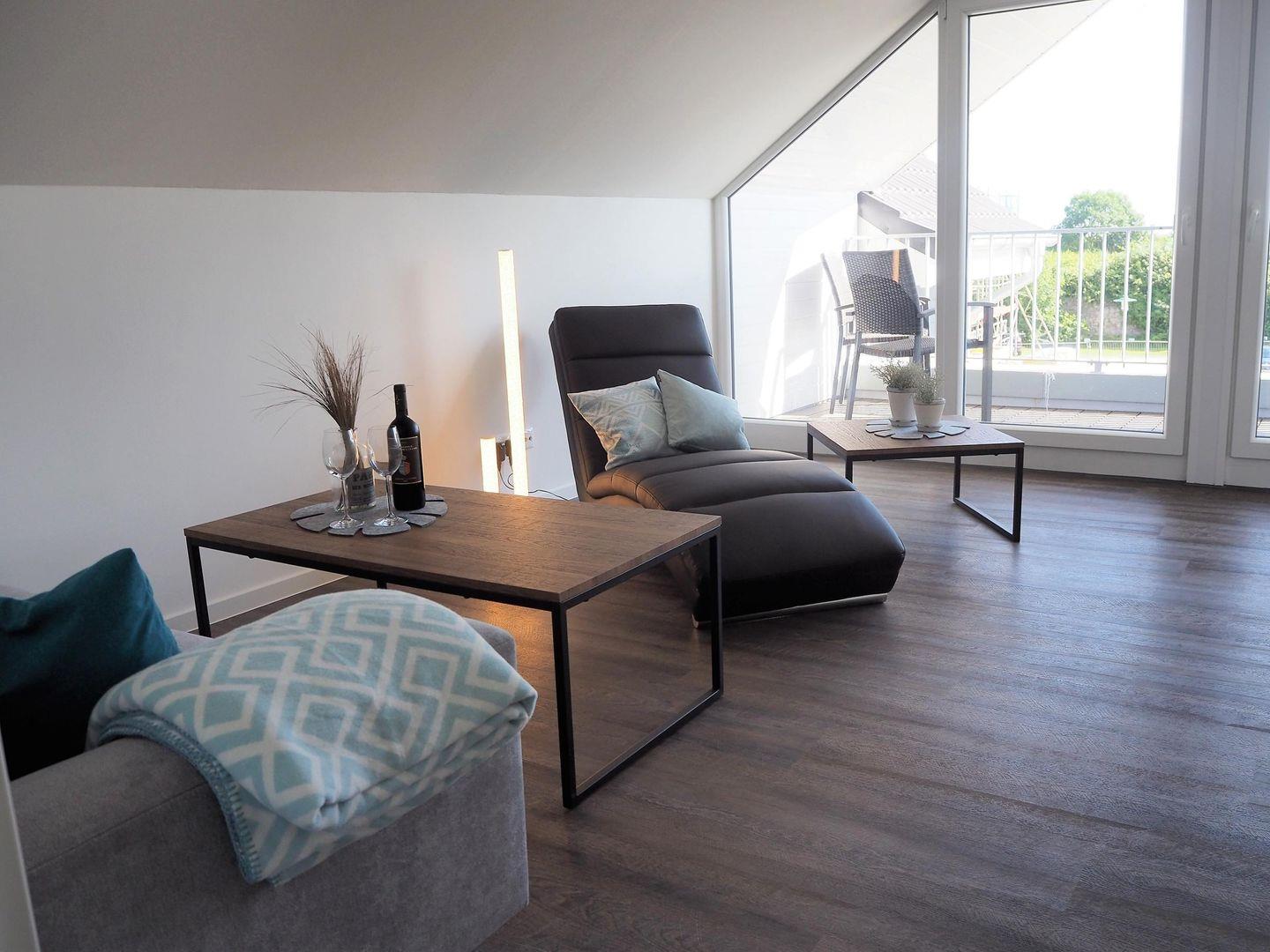 Auch hier bietet eine gemütliche Sofaecke und eine Relax Liege die Möglichkeit zum Entspannen.