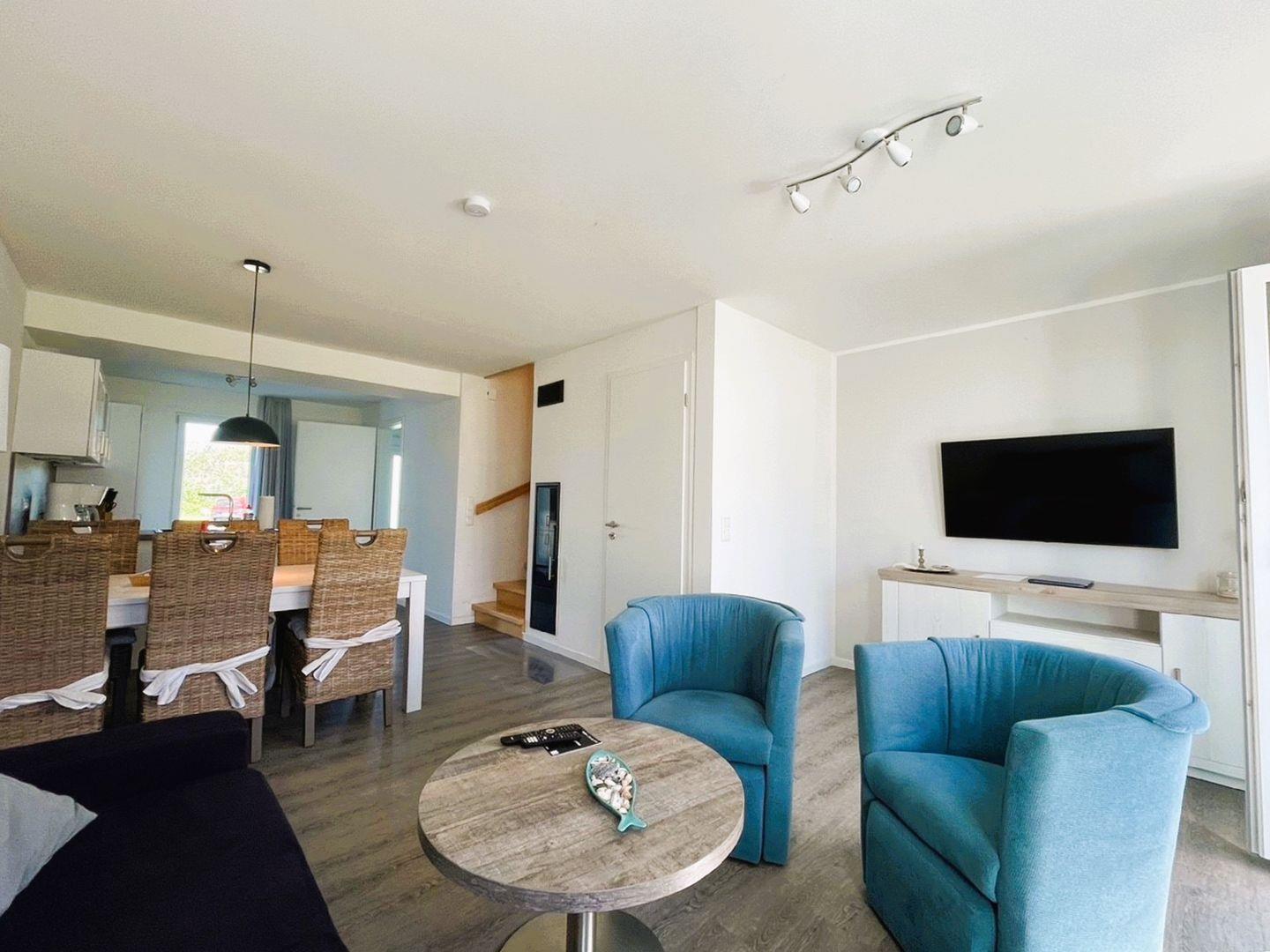 Im hinteren Bereich, zur Terrasse gelegen, steht eine gemütliche Sofaecke mit Fernseher zur Verfügung.