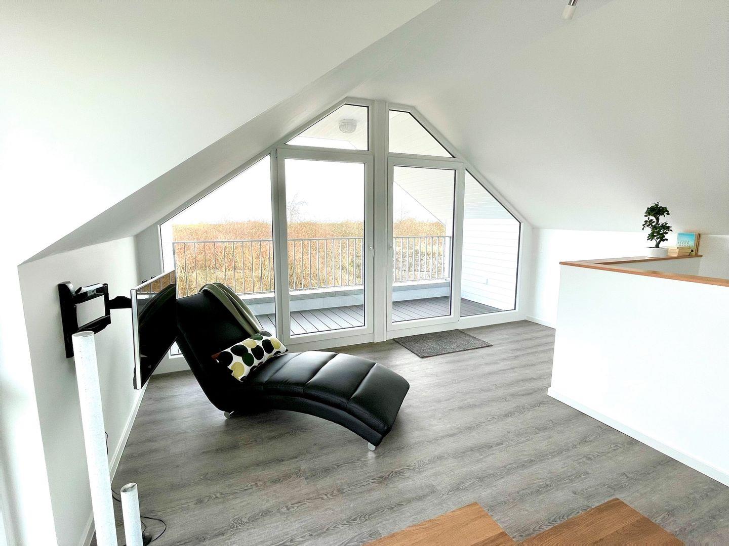 Die Galerie mit Zugang zur Loggia ist ein großartiger Rückzugsort.