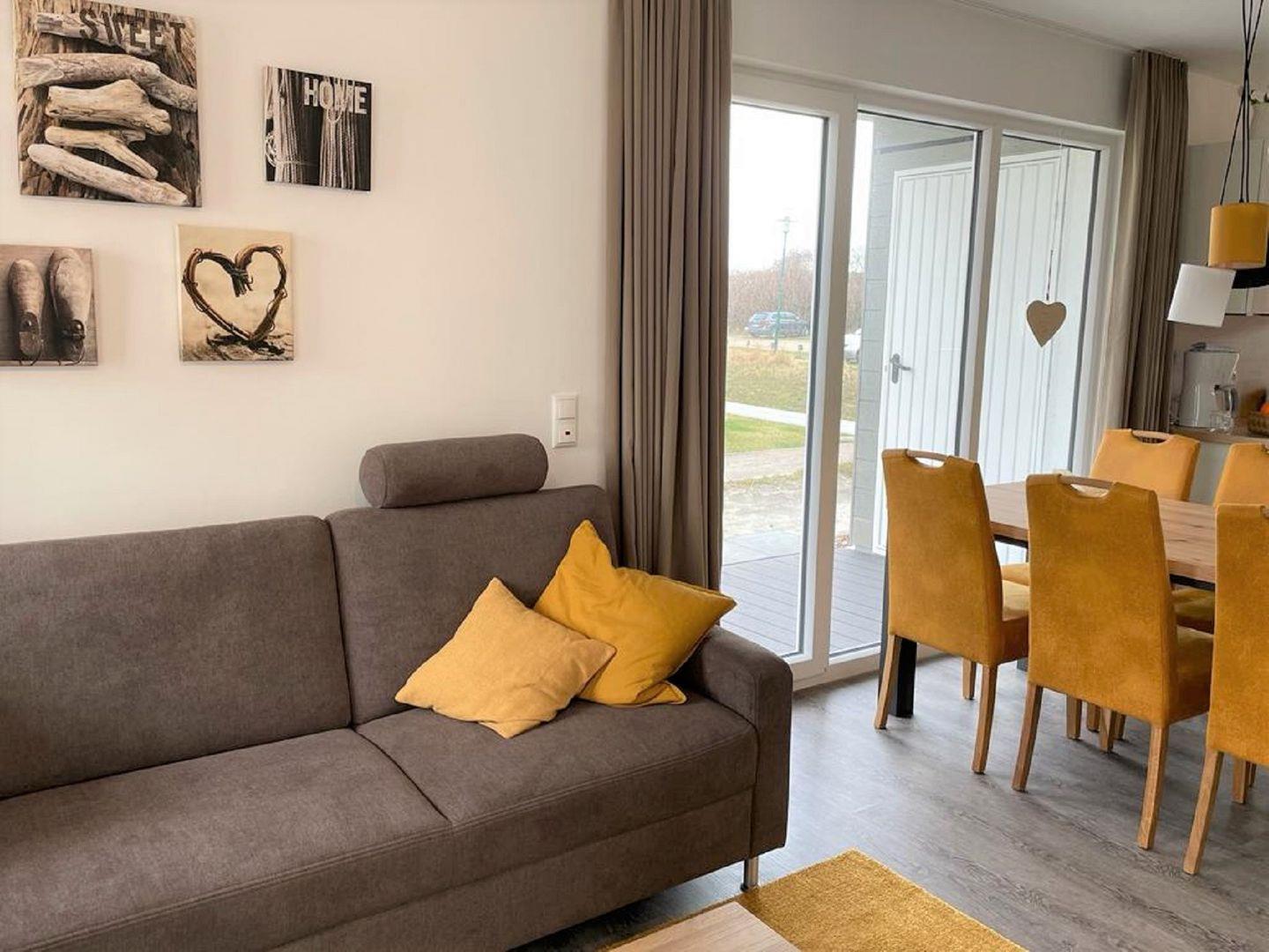 Im hinteren Bereich, zur Terrasse gelegen, steht Ihnen eine gemütliche Sofaecke mit Fernseher zur Verfügung.