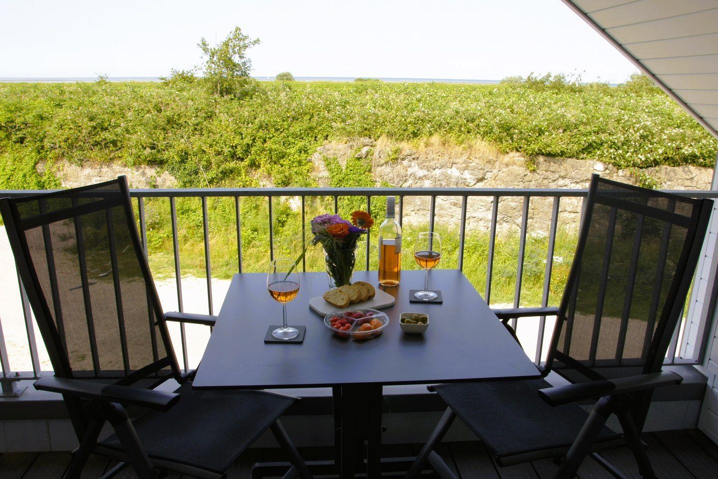 Im DG befindet sich das dritte Schlafzimmer mit Doppelbett (180x200), sowie die großzügige Lounge mit Couch, Relax-Liege und Smart-TV. Über die Lounge haben Sie Zugang zu dem Balkon mit einem wunderschönen Blick auf die Nordsee und dem Wattenmeer.
