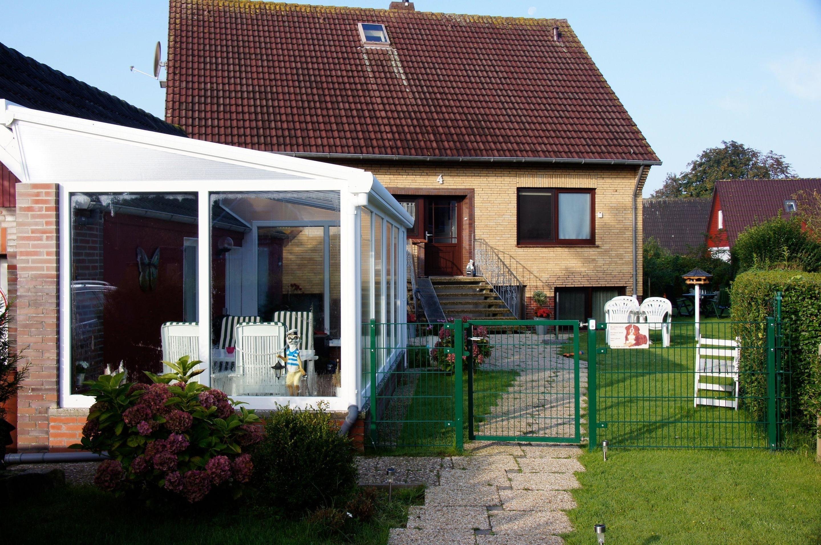 Das Haus liegt ruhig etwas zurückversetzt von der Strasse , direkt an der Grenze zu Carolinensiel