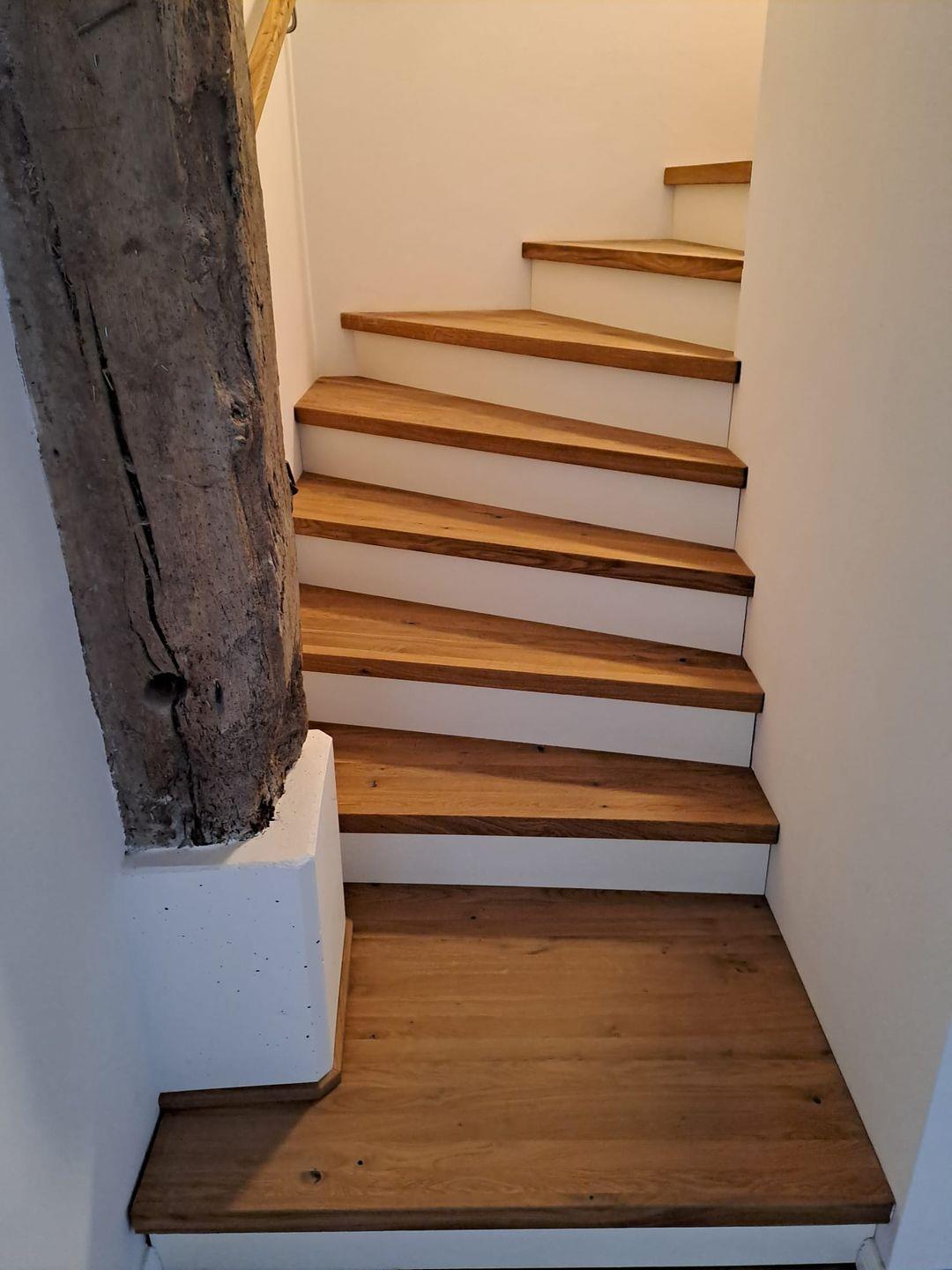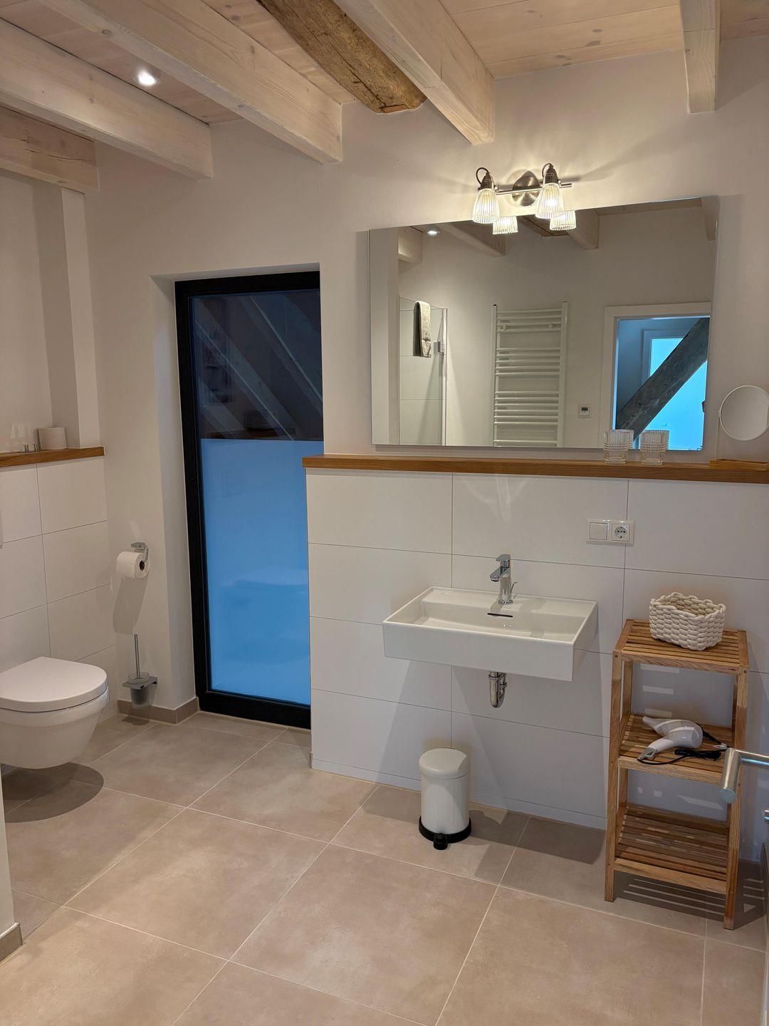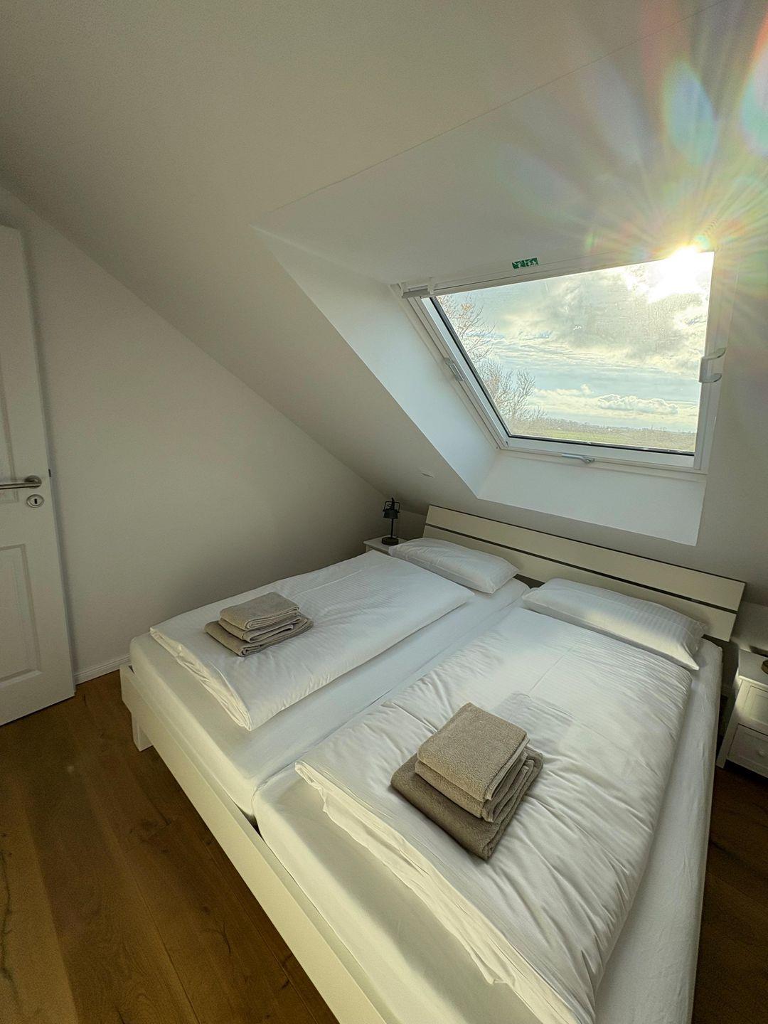 Die Unterkunft verfügt über insgesamt vier Zimmer, davon drei separate Schlafzimmer – ideal für Familien oder kleine Gruppen, die Wert auf Rückzugsmöglichkeiten legen. Für einen erholsamen Aufenthalt sorgt neben der modernen Zentralheizung eine angenehme Fußbodenheizung, und Parkettboden in Wohn- und Schlafzimmern schafft ein behagliches Wohnklima. Darüber hinaus steht ein Gäste-WC zusätzlich zum modernen Badezimmer mit bodengleicher Dusche zur Verfügung.