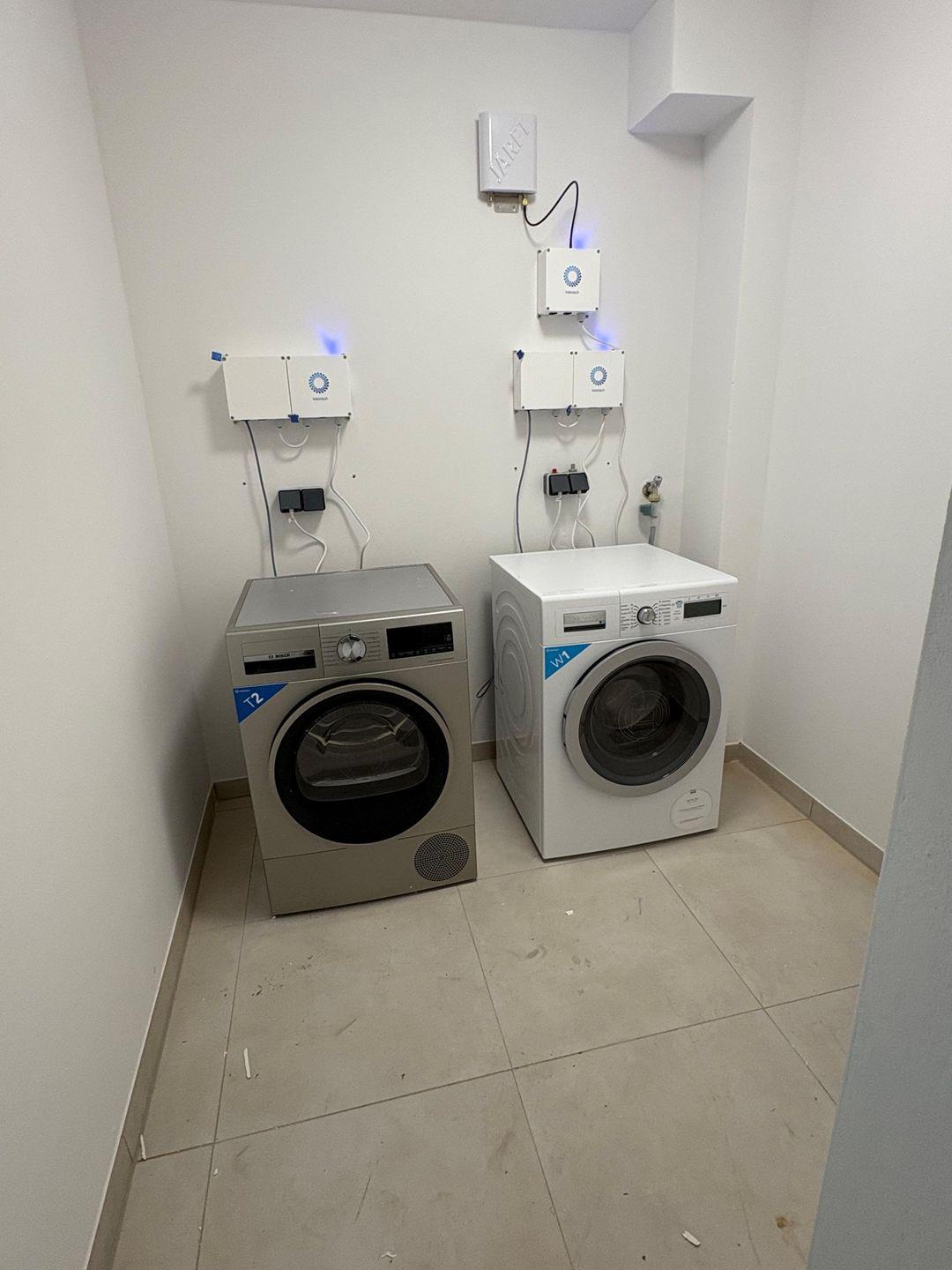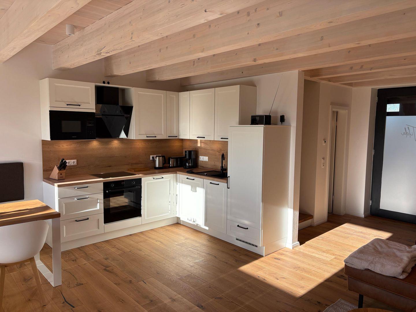 Die offen zum Wohnzimmer gestaltete Küche ist hochwertig ausgestattet und lässt keine Wünsche offen: Induktionsherd, Backofen, Mikrowelle, Spülmaschine, Kühlschrank mit Gefrierfach, Kaffeemaschine, Wasserkocher, Toaster, Mixer sowie umfassende Küchenutensilien und natürlich Geschirr und Besteck stehen bereit. Der gemeinschaftlich nutzbare Waschraum mit Waschmaschine und Trockner, ebenso wie Bügelbrett, Bügeleisen und Wäscheständer, bieten zusätzlichen Komfort – insbesondere für längere Aufenthalte oder Familien mit Kindern.