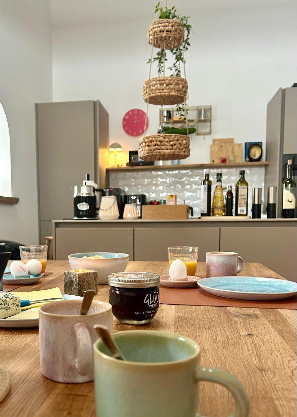 Der offene Wohn-, Ess- und Kochbereich ist hell, großzügig und lädt zum Zusammensein ein. Die Küche mit Kochinsel ist vollständig ausgestattet – unter anderem mit Heißluftfritteuse, Kaffee-Vollautomat, Milchschäumer, Induktionskochfeld und Backofen – ideal für alle, die gern selbst kochen.