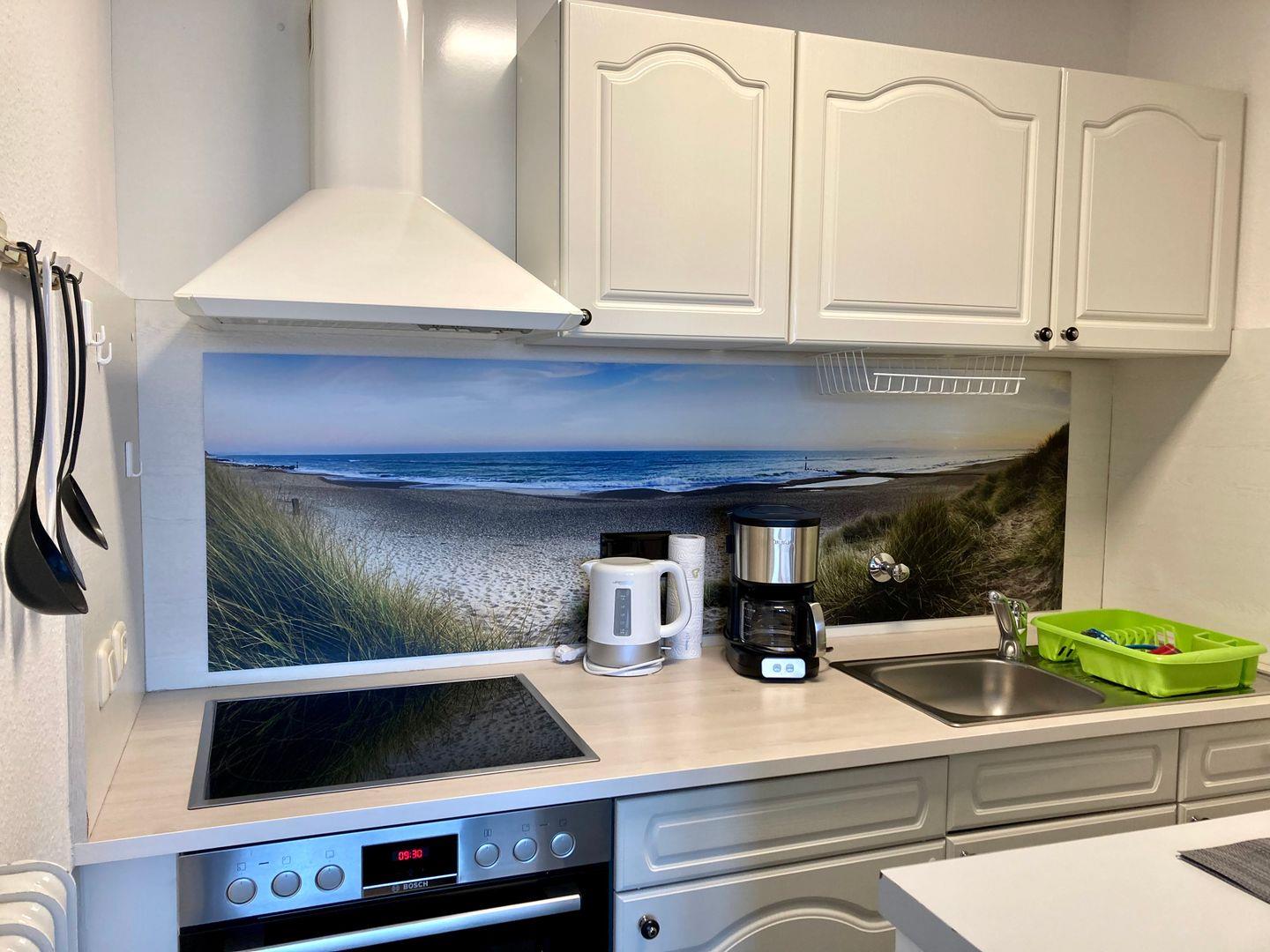 Es erwartet Sie ein lichtdurchflutetes Wohnzimmer mit angrenzender Küche, die über alles verfügt, was man für eine bequeme Selbstverpflegung benötigt.