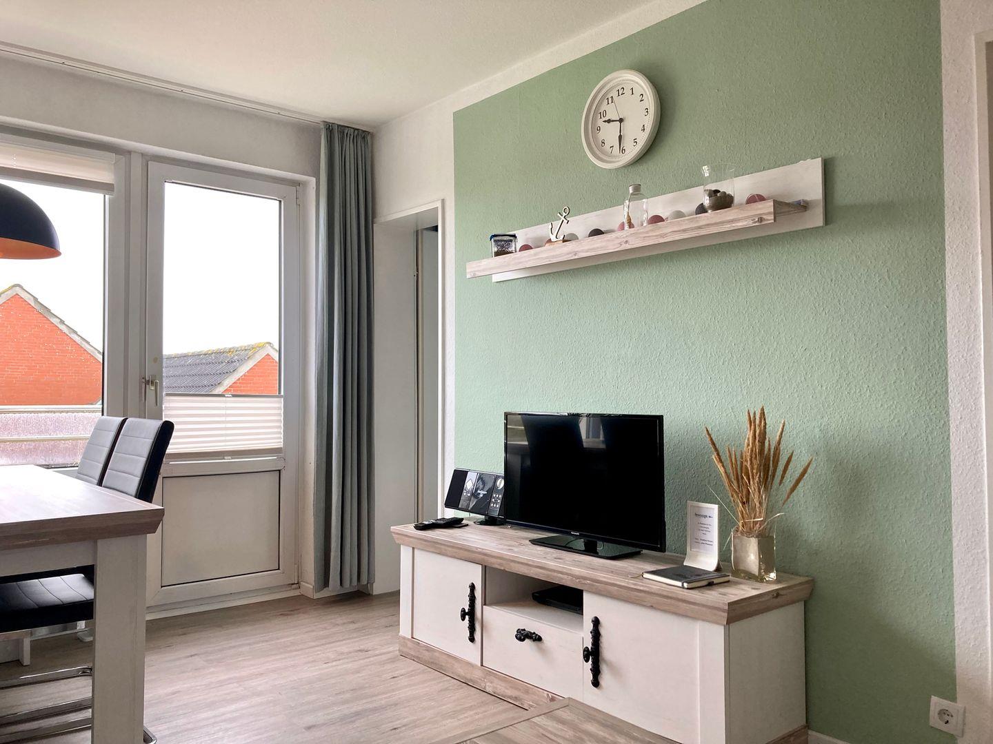 Gemütliche 2-Zimmer-Wohnung in Wangerooge mit Südbalkon und Blick aufs Wattenmeer, renoviert 2020, nahe Strand und Einkaufsmöglichkeiten.