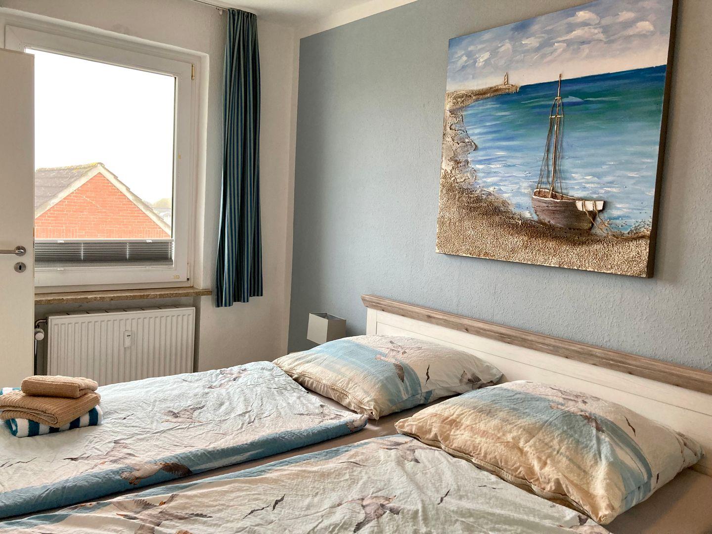 Im Schlafzimmer erwartet Sie ein Doppelbett und auch für ein Kinderreisebett wäre hier noch genug Raum.