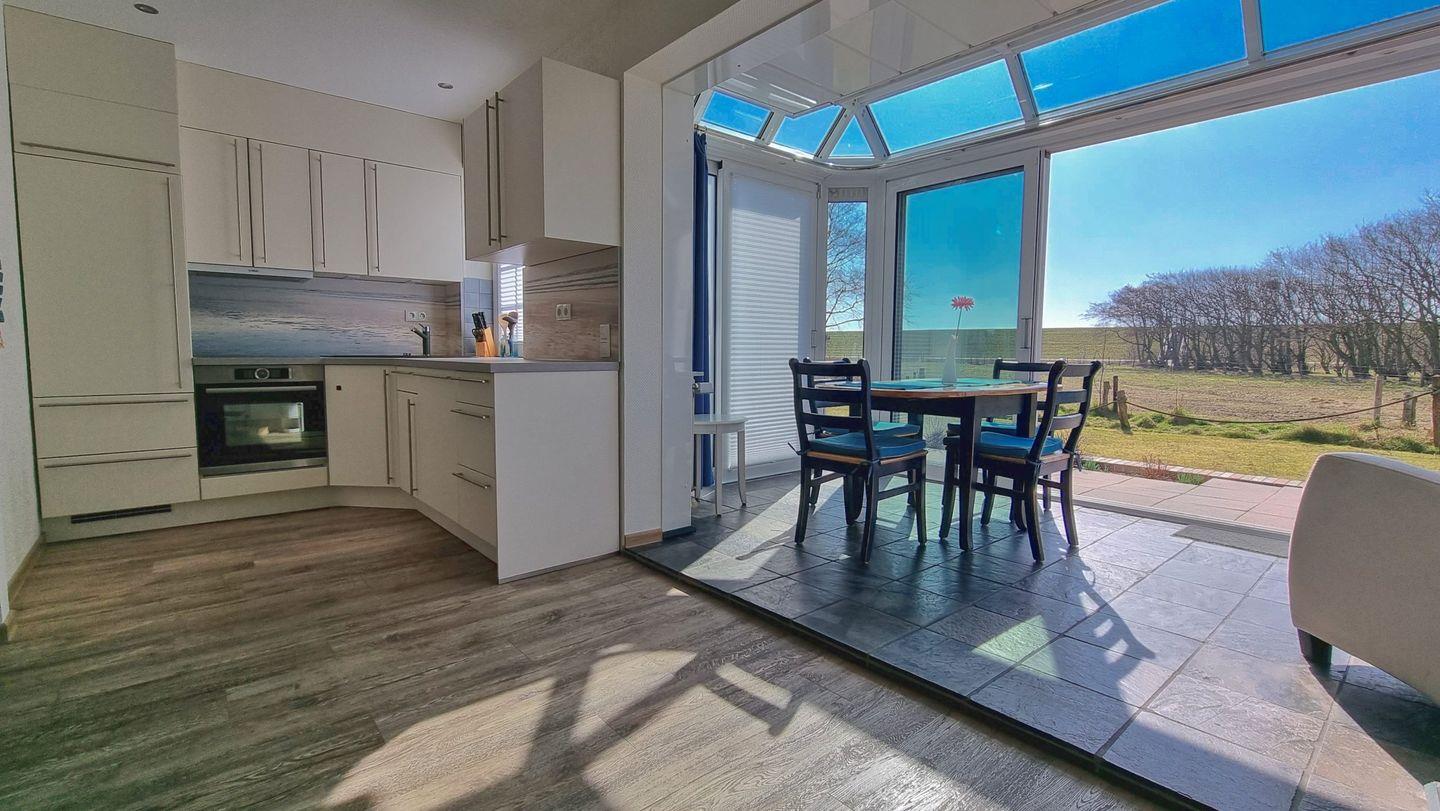 Moderne Ferienwohnung mit Wintergarten, Gartenblick und offener Küche auf Wangerooge.