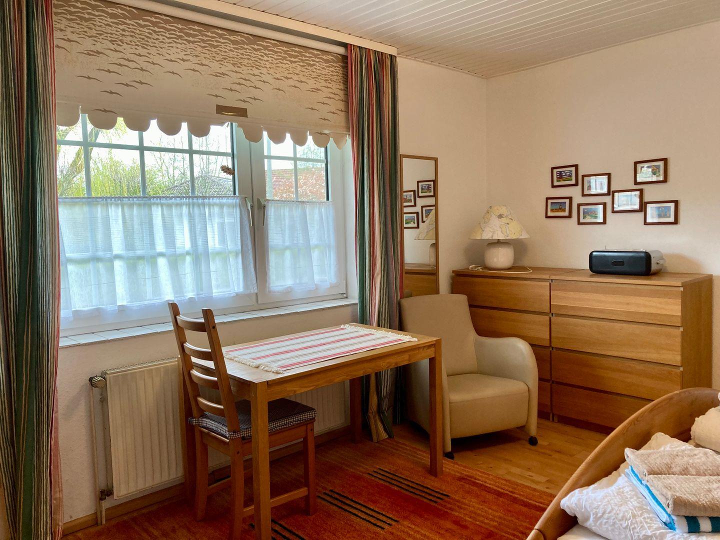 Diese geschmackvoll eingerichtete Ferienwohnung ist im Erdgeschoss gelegen und bietet eine schöne Sonnenterrasse mit freiem Zugang zum Garten. Hier beginnt der erholsame Urlaub mit Blick auf den Deich und Pferdeweiden.