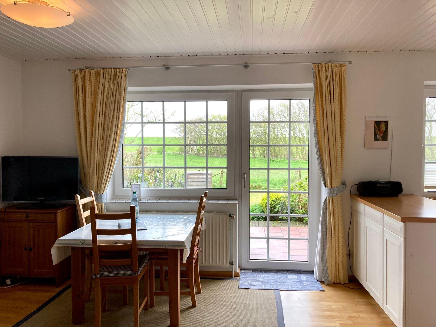 Über den Wohnraum erreicht man die herrlich große Südterrasse mit kleinem Kräutergarten und Zugang zum Garten mit großzügiger Rasenfläche- der perfekt Ort für Erholung an der frischen Nordseeluft!