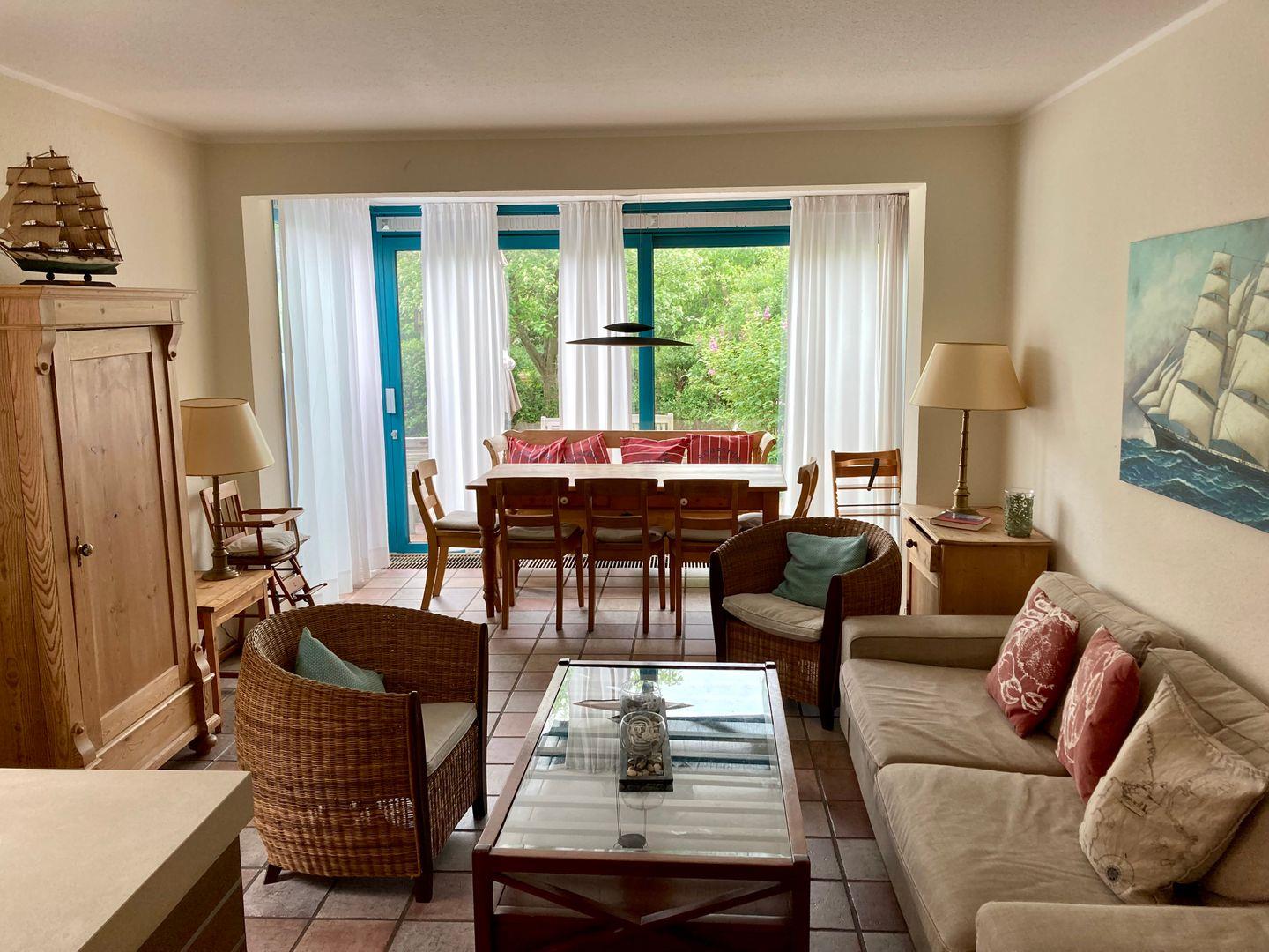 Der geräumige Wohn-/Essbereich läd zum Verweilen ein und die angeschlossene offene Küche verfügt über alles, was man für eine bequeme Selbstverpflegung benötigt