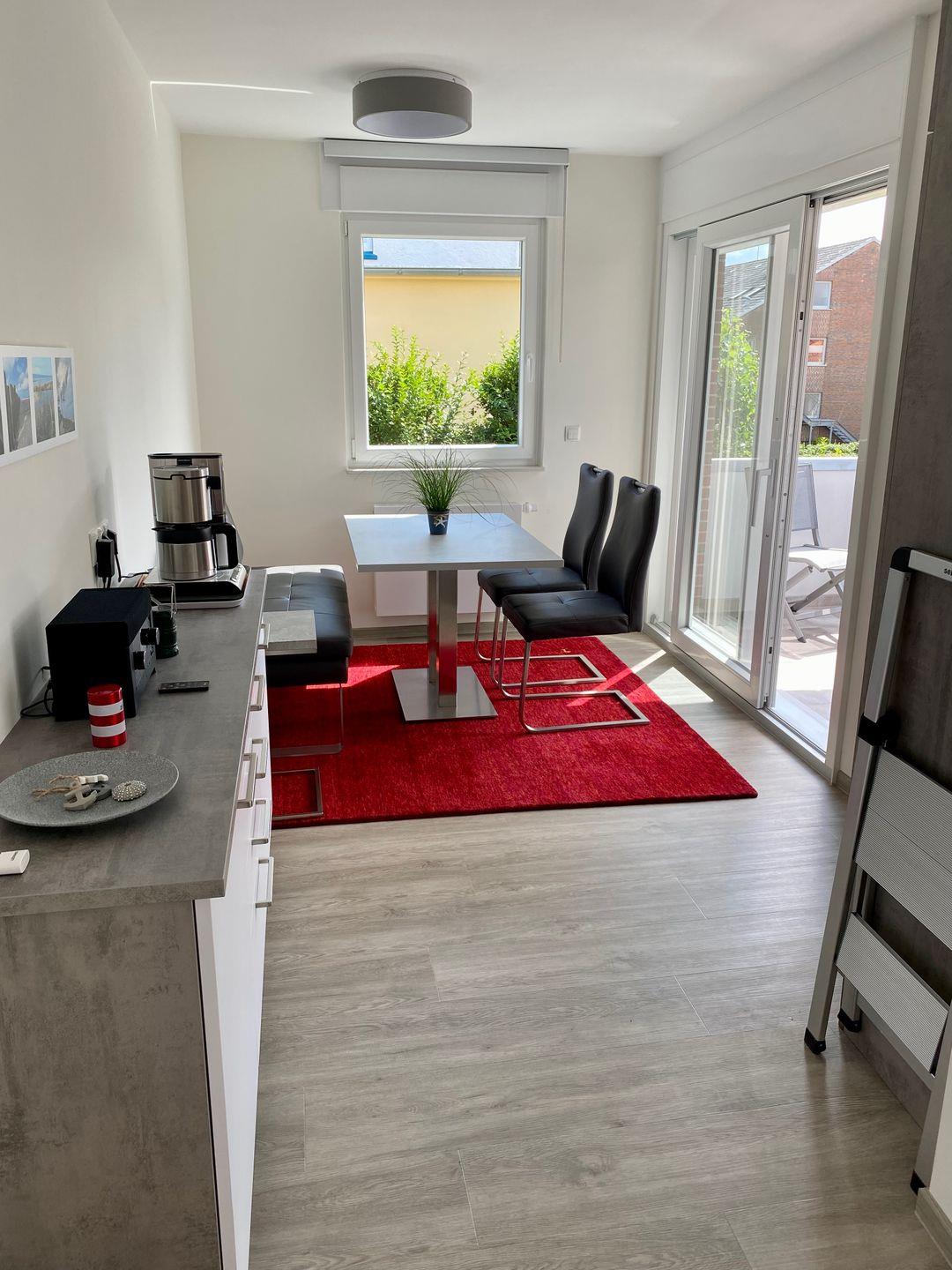 Moderne Ferienwohnung mit Balkon, zentral und ruhig auf Wangerooge, ideal für erholsamen Urlaub mit Komfort und Meer in kurzer Nähe.