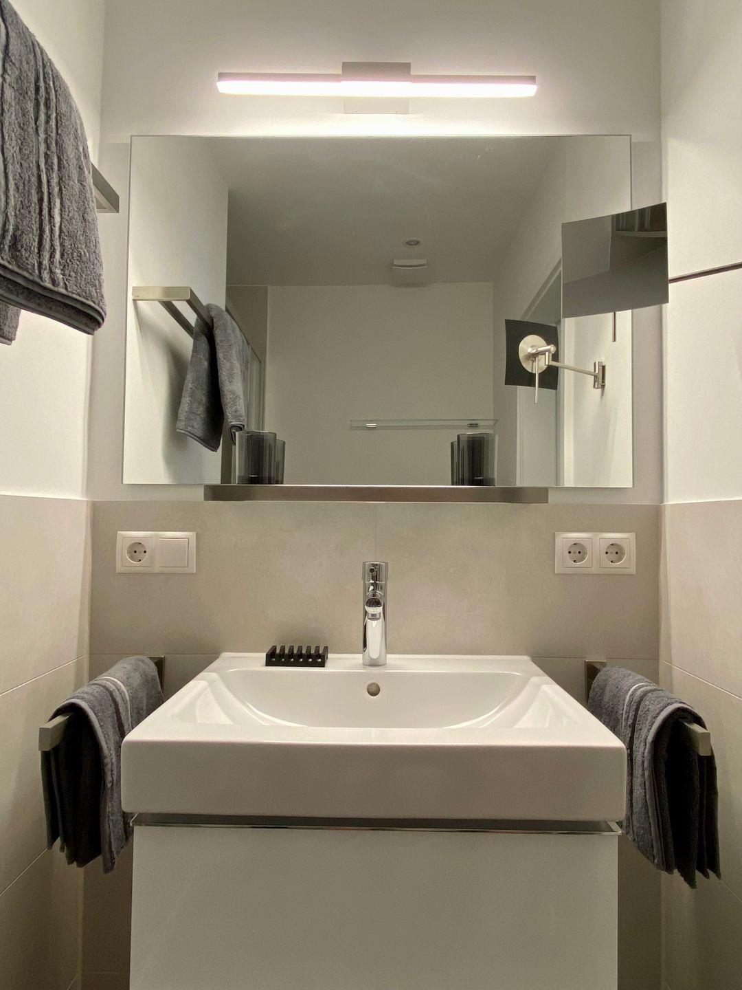 Die Wohnung ist sehr gut für 2 Personen geeignet. In dem kleinen Schlafzimmer steht ein 160cm breites Doppelbett mit separaten Matratzen zur Verfügung. Weitere zwei Personen können auf der Schlafcouch im Wohnzimmer übernachten. Das kleine Badezimmer ist sowohl vom Wohn-/Esszimmer als auch vom Schlafzimmer aus über den Flur zu erreichen.