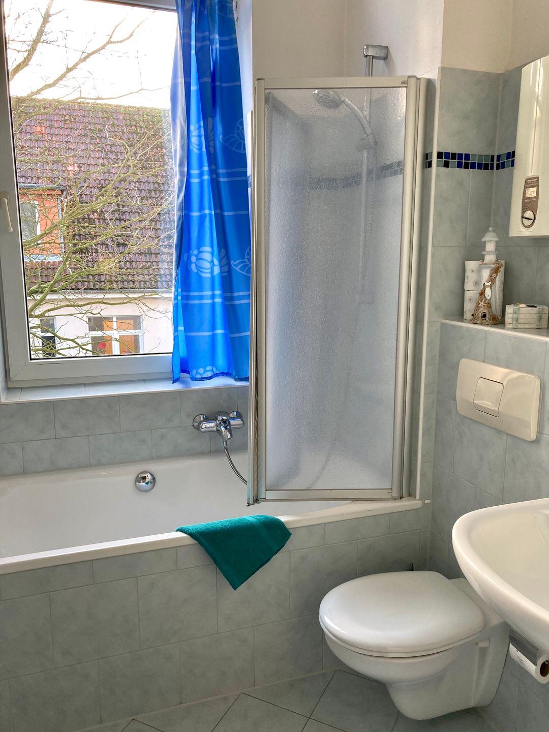Das geräumige Badezimmer beinhaltet eine Badewanne und ein Fenster, wodurch man auch hier ideal lüften kann