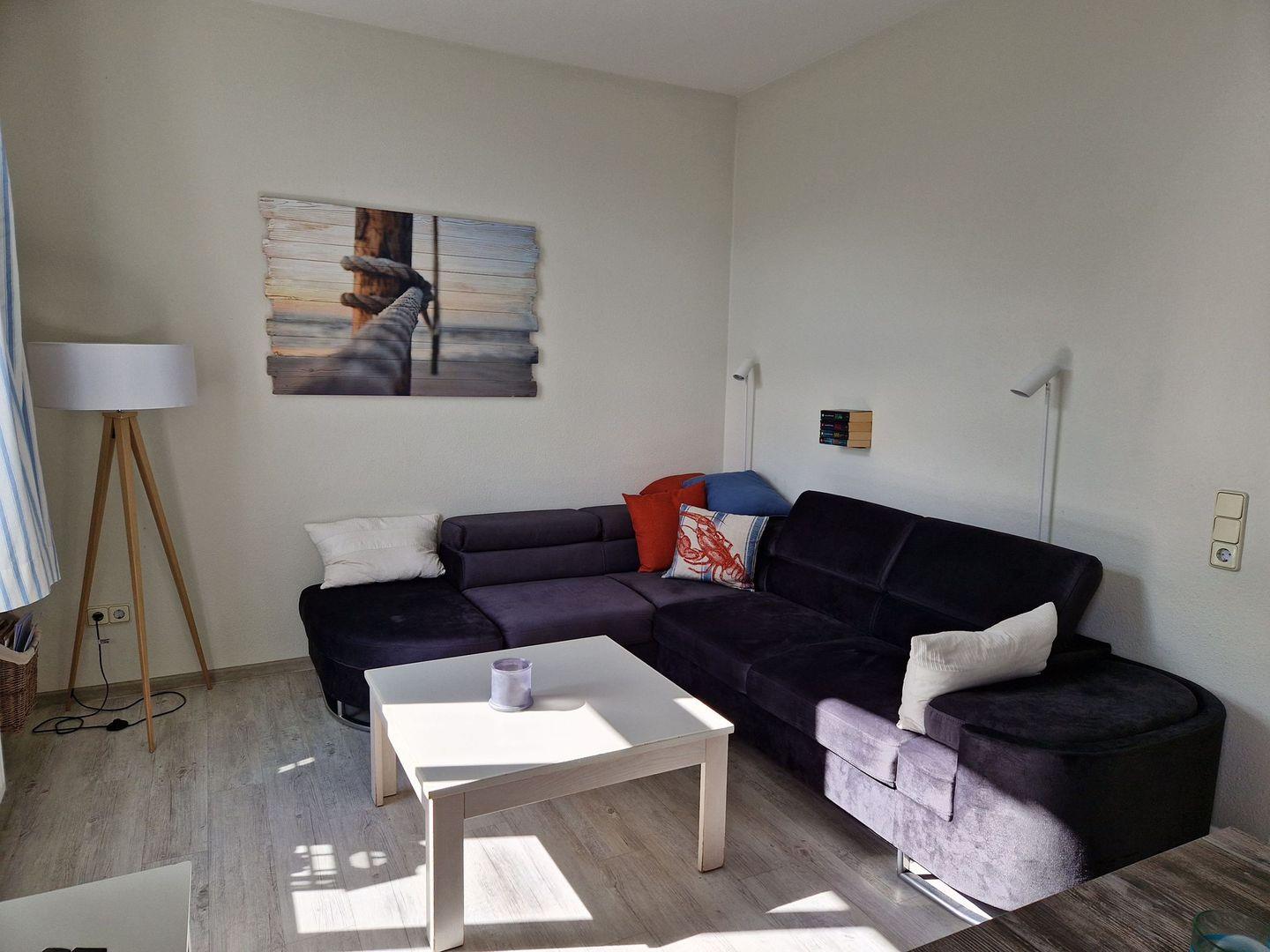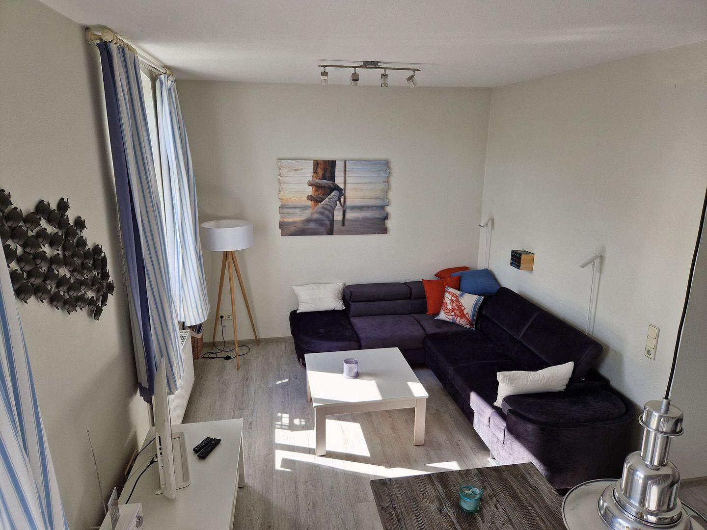 Die modern eingerichtete Ferienwohnung ist mit komfortablen Möbeln behaglich und praktisch ausgestattet. Auch WLAN ist hier verfügbar.