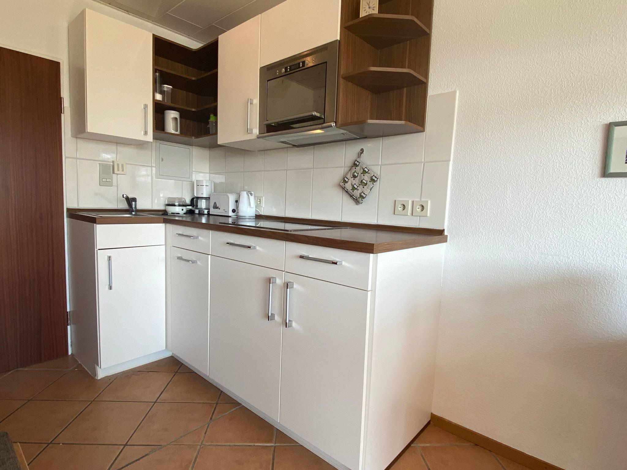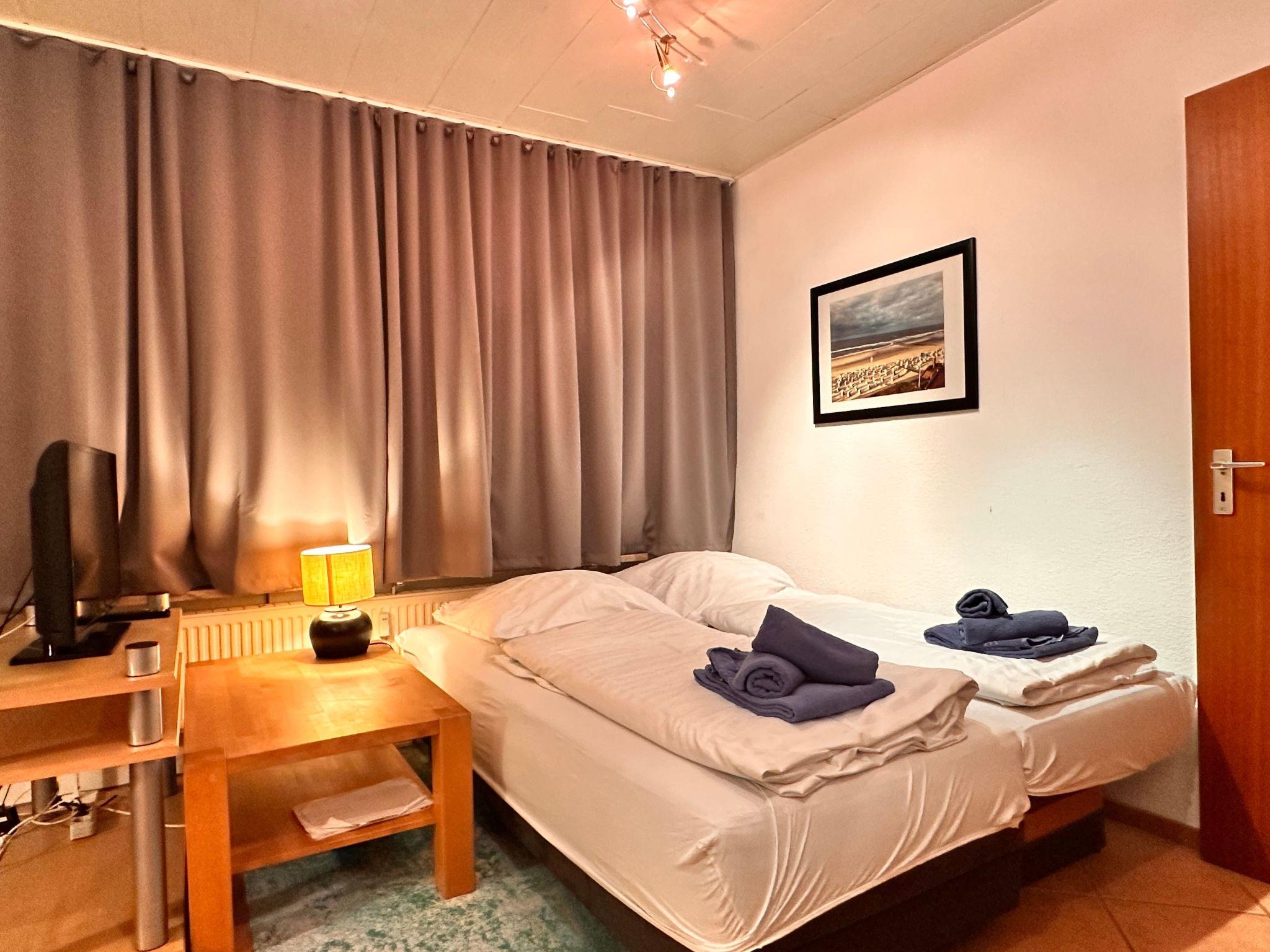 Die 2 Zimmer Wohnung ist ca 46 m2 gross und besteht aus einem separaten Schlafzimmer, einer Wohnküche, einem Badezimmer und einer Dachterasse. Die Wohnung bietet Platz für 2 Erwachsene und 2 Kinder. Schlafzimmer - das Bett kann wahlweise als 2x2 m Doppelbett oder als 2 Einzelbetten genutzt werden. In der Wohnküche befinden sich zwei Einzelschlafsofas 0,8x1,9 m, die im Mai 2022 neu installiert wurden. Beide Zimmer können mit Rollos verdunkelt werden. Ein Fernseher mit Kabel TV, ein Blueray Spieler und ein kleiner Musiklautsprecher mit USB Anschluss sind vorhanden. In der Küchenzeile sind ein 4 Platten Glaskeramikfeld, Geschirrspüler, Mikrowelle mit Pizza Funktion und Kühlschrank mit kleinem Eisfach integriert. Die Küche ist vollständig mit Küchenutensilien wie Töpfen und Pfannen, Geschirr und Gläsern, sowie Mixer, Pürrierstab, Toaster, Wasserkocher, Filter Kaffeemaschine und Espressokanne ausgestattet. Wifi ist in der ganzen Wohnung kostenlos vorhanden.
