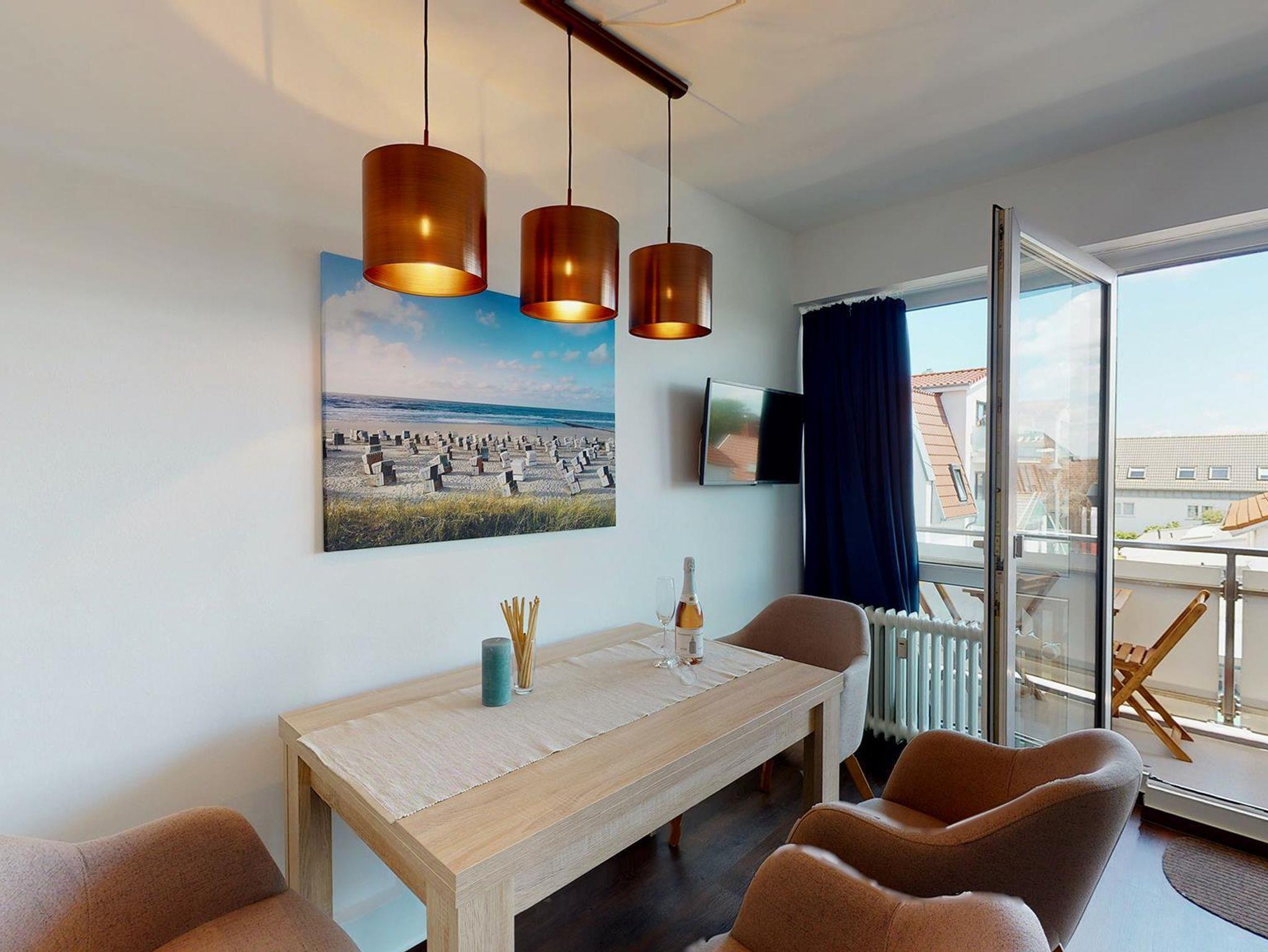 Modern eingerichtete Ferienwohnung mit Balkon nahe dem Wangerooger Badestrand und zentraler Lage.