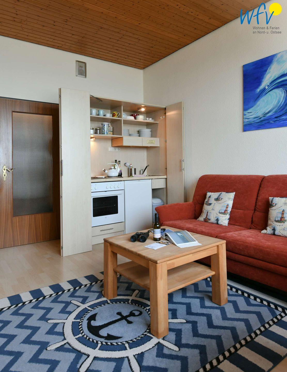 Die gemütliche Ferienwohnung verfügt über einen Wohnraum, der u.a. mit einer bequemen Couch sowie einem TV mit Blu-ray-Recorder und einer Pioneer Kompakt-Anlage eingerichtet ist. Hier können Sie es sich besonders in den Abendstunden gemütlich machen und herrlich relaxen!