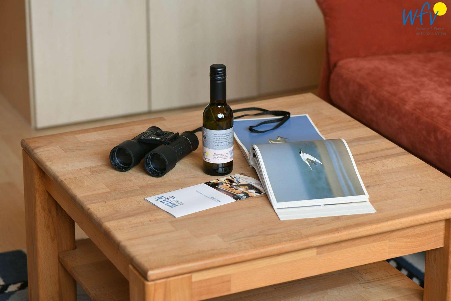 Der Esstisch ist direkt am Fenster platziert, sodass Sie auch bei den Mahlzeiten einen schönen Blick auf die Nordsee genießen. Während der Sommerzeit kann man sowohl den Sonnenauf- als auch den Sonnenuntergang bei klarem Himmel betrachten. Je nach Wetterlage ist sogar Helgoland am Horizont zu erkennen!