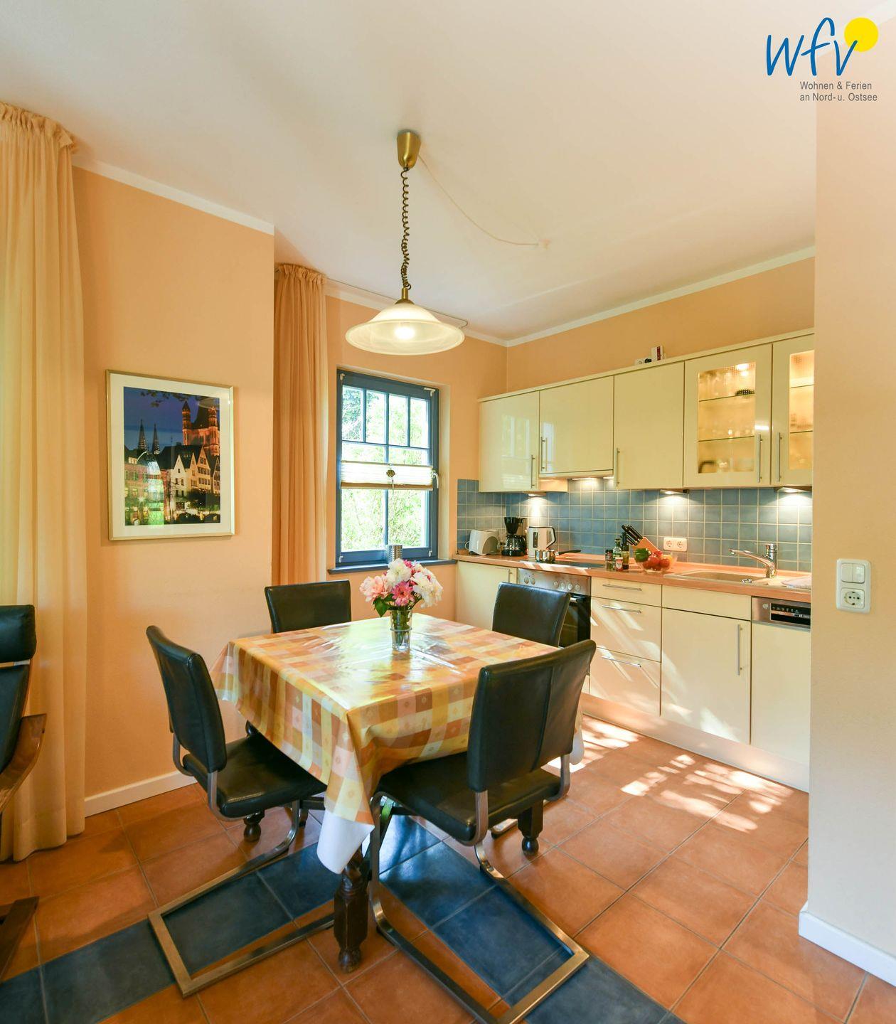 Für eine bequeme Selbstverpflegung in Ihrem Urlaub verfügt die Küche u.a. über einen Ceranherd mit Backofen, einen Kühlschrank mit Gefrierfach und einen Geschirrspüler. Kaffeemaschine, Wasserkocher und Toaster sind selbstverständlich ebenfalls vorhanden. Ein hübscher Esstisch lädt bereits morgens zum leckeren Ferienfrühstück ein. Da bekommt man direkt Lust, einen ereignisreichen Ferientag auf Wangerooge zu planen!