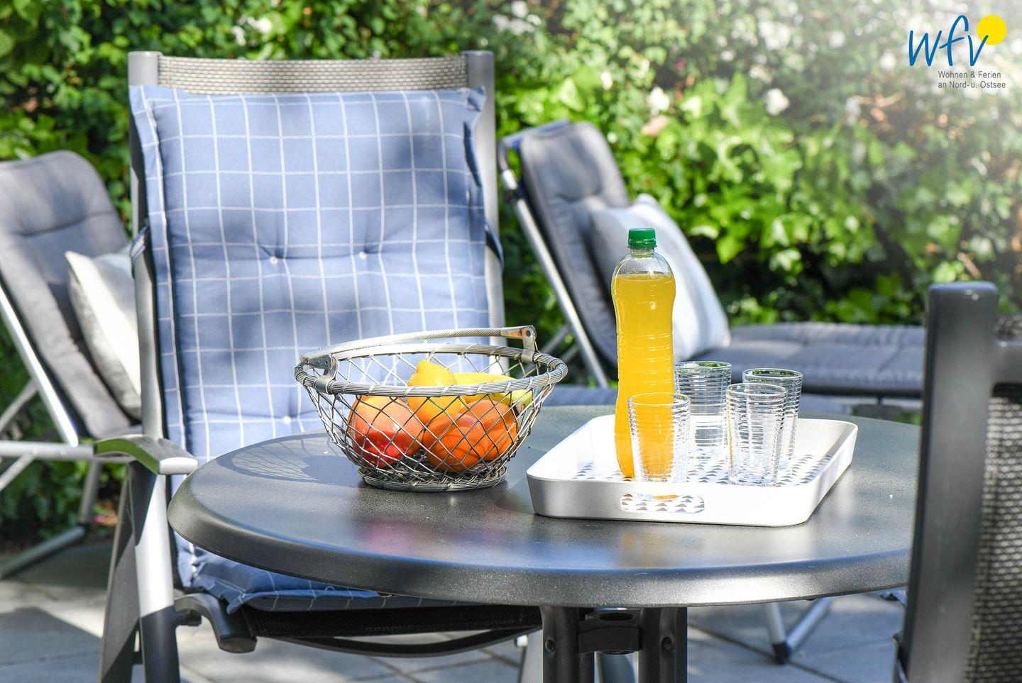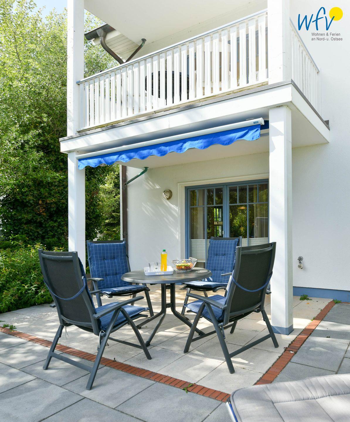 Das Highlight der Wangerooger Ferienwohnung ist die große Terrasse! Hier können Sie wunderbar am Esstisch zusammensitzen, gemeinsame Mahlzeiten einnehmen oder den Urlaubstag bei einem guten Glas Wein ausklingen lassen. Zum ausgiebigen Relaxen ist außerdem ein bequemer Strandkorb vorhanden - ideal, um wärmende Sonnenstrahlen und frische Nordseeluft zu genießen! Die Terrasse kann teilweise mit einer Markise überdacht werden, sodass es auch an heißen Tagen sehr angenehm ist.