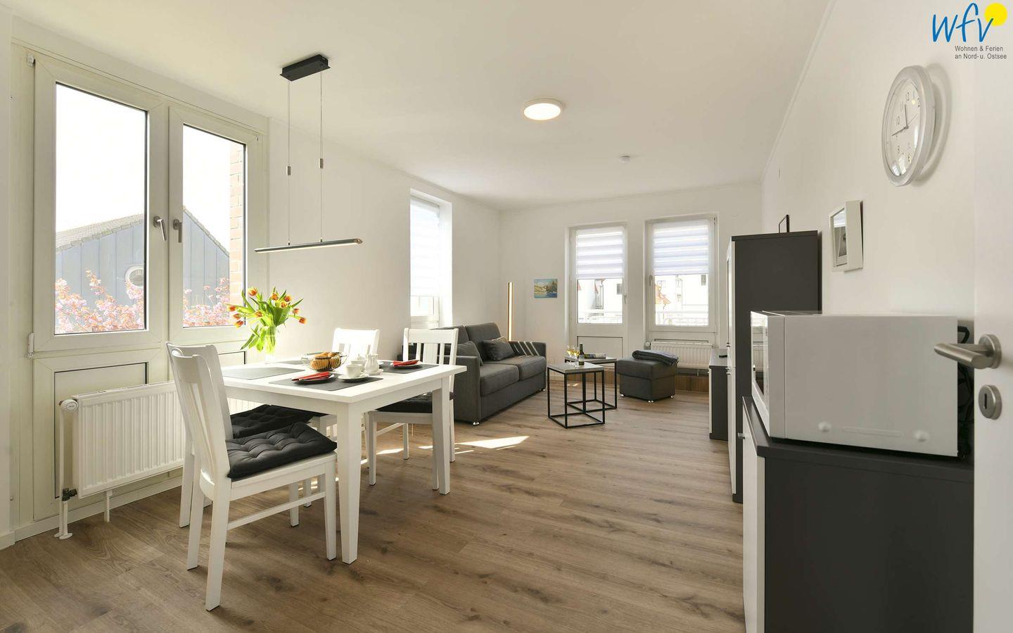 Genießen Sie Ihren Wangerooge-Urlaub in vollen Zügen! Unsere moderne Ferienwohnung mit Balkon und Gemeinschaftsgarten ist ideal für den Romantik-Urlaub zu zweit (ggf. mit Kleinkind).