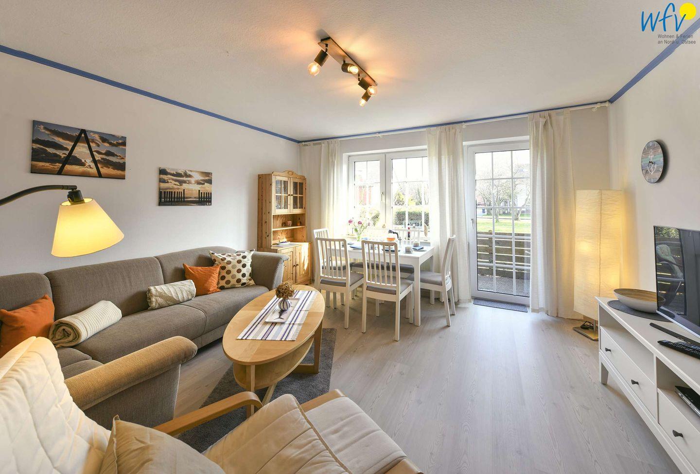 Große, familienfreundliche Ferienwohnung auf Wangerooge mit Sonnenterrasse und moderner Ausstattung für entspannte Urlaubstage.