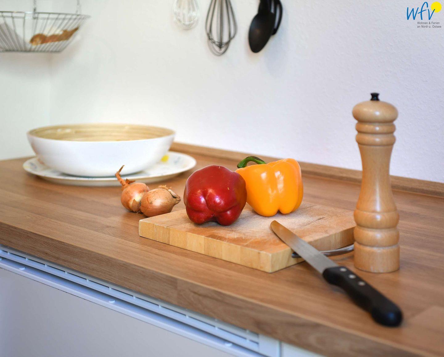 Damit Sie sich in Ihrem Urlaub auf Wangerooge bequem selbst verpflegen können, verfügt die Ferienwohnung "Kompass" über eine Küche im hübschen Landhausstil. U.a. mit Herd (Ceranfeld), Backofen, Kühlschrank mit Gefrierfach, Geschirrspüler, Kaffeemaschine, Senseo-Kaffeepadmaschine (zusätzlich), Wasserkocher, Toaster, Mixer und Eierkocher. Zudem steht Ihnen ein SodaStream Wassersprudler zur Verfügung.