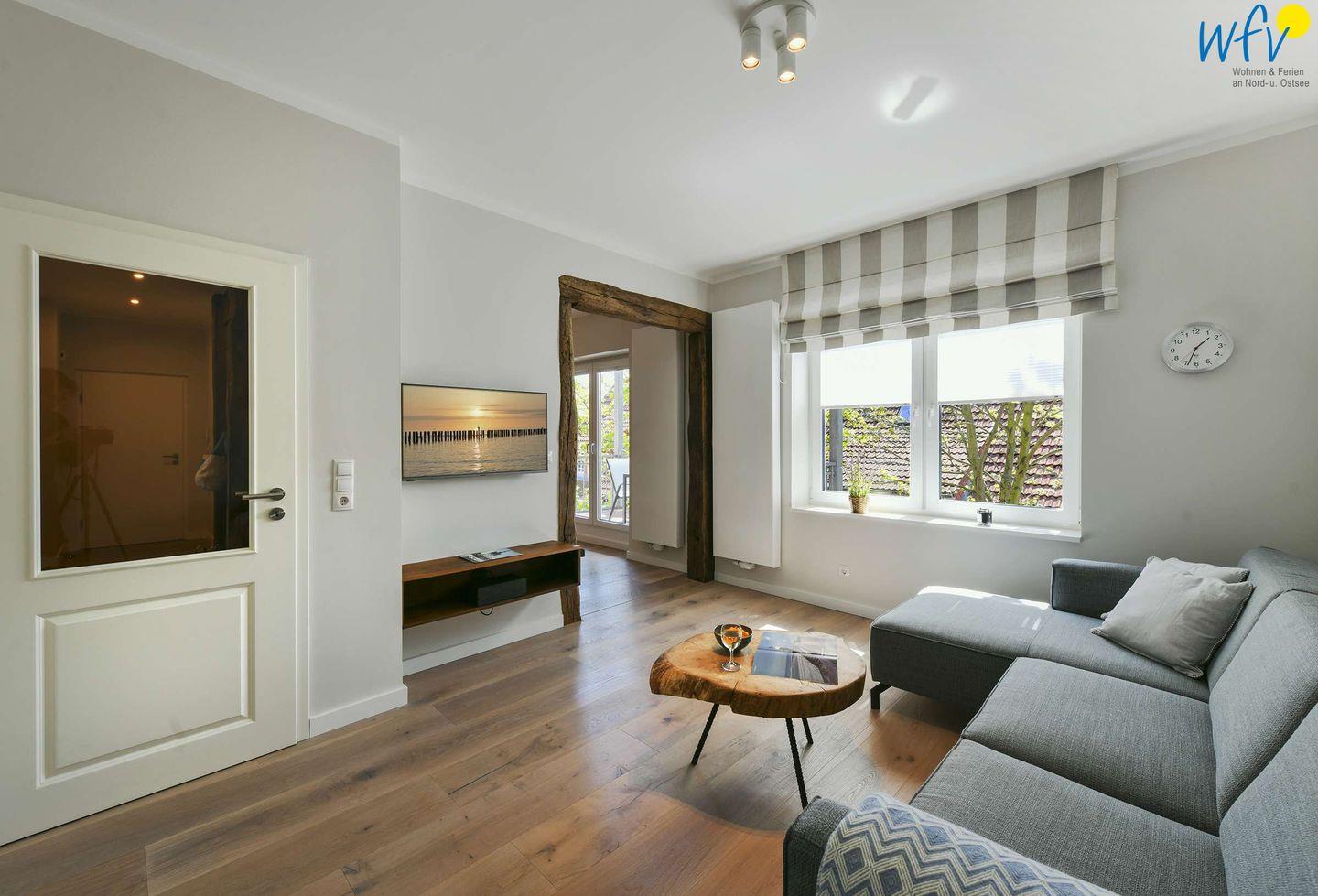 Genießen Sie exklusiven Wohnkomfort in Ihrem Urlaub auf Wangerooge! Eine stilvolle Einrichtung, große Fenster mit schönem Lichteinfall sowie geschmackvolle Accessoires machen diese Ferienwohnung zu Ihrer persönlichen Wohlfühloase auf Wangerooge. Besonders die Kombination aus Historie und Moderne durch frei gelegte Holzbalken und einer hellen modernen Ausstattung wirkt sehr charmant!