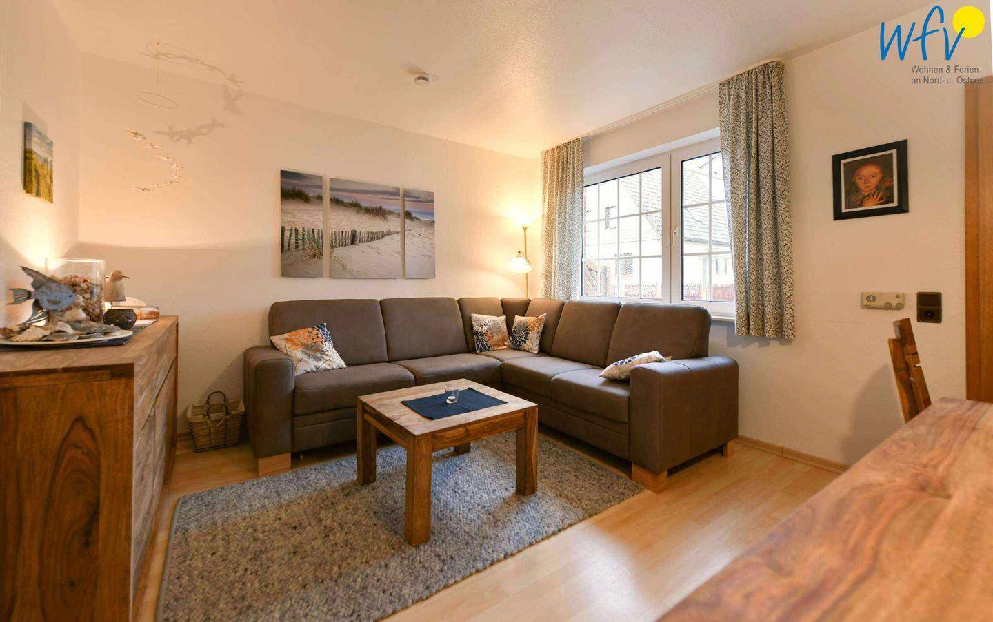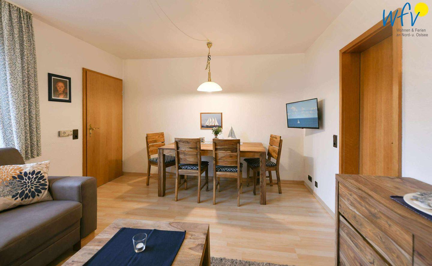Ob nach dem sonnigen Strandtag, der ausgiebigen Fahrradtour oder der interessanten Wattwanderung - in dem gemütlichen Wohnraum mit Couchecke und Flachbildfernseher können Sie ausgiebig relaxen! Zu gemeinsamen Mahlzeiten oder lustigen Spielnachmittagen lädt ein Esstisch ein. Ihre Kinder dürfen sich gerne an den vorhandenen Spielen bedienen.