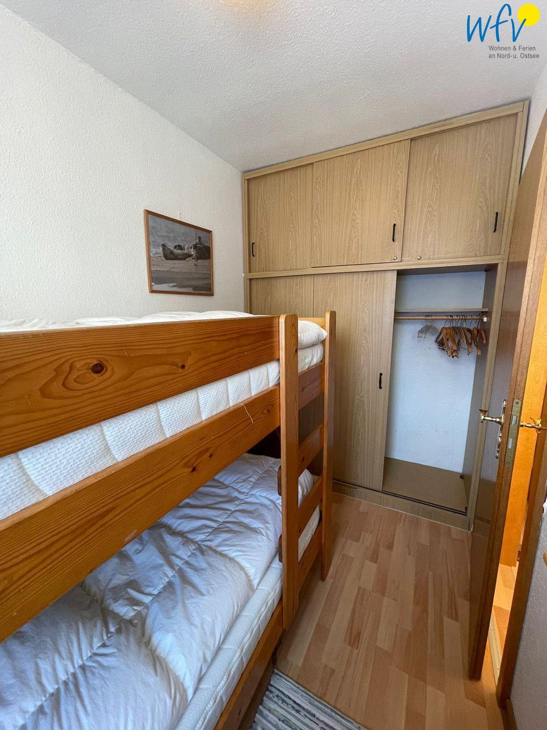 Ausschlafen können Sie in Ihrem Urlaub auf Wangerooge ganz wunderbar in den zwei gemütlichen separaten Schlafzimmern! Eines ist mit einem Doppelbett ausgestattet (2 x 80 x 200 cm), das andere mit einem Stockbett (2 x 90 x 200 cm). Für Ihre Urlaubsgarderobe gibt es ausreichend Platz in den Kleiderschränken. Die Zimmer lassen sich selbstverständlich abdunkeln.