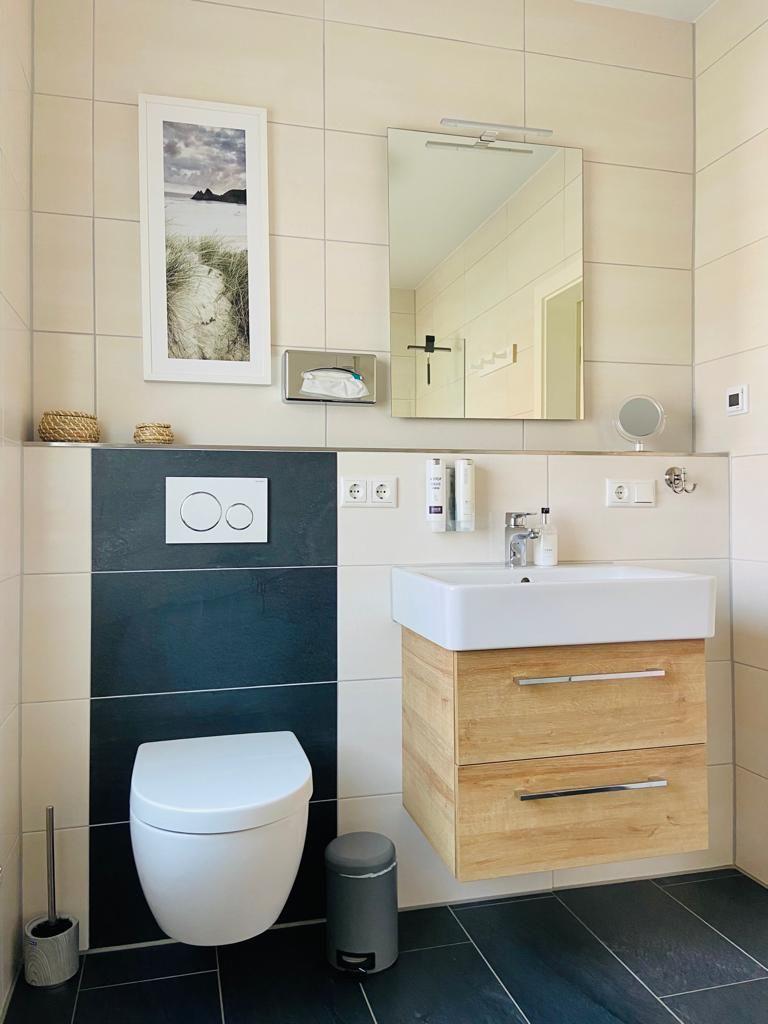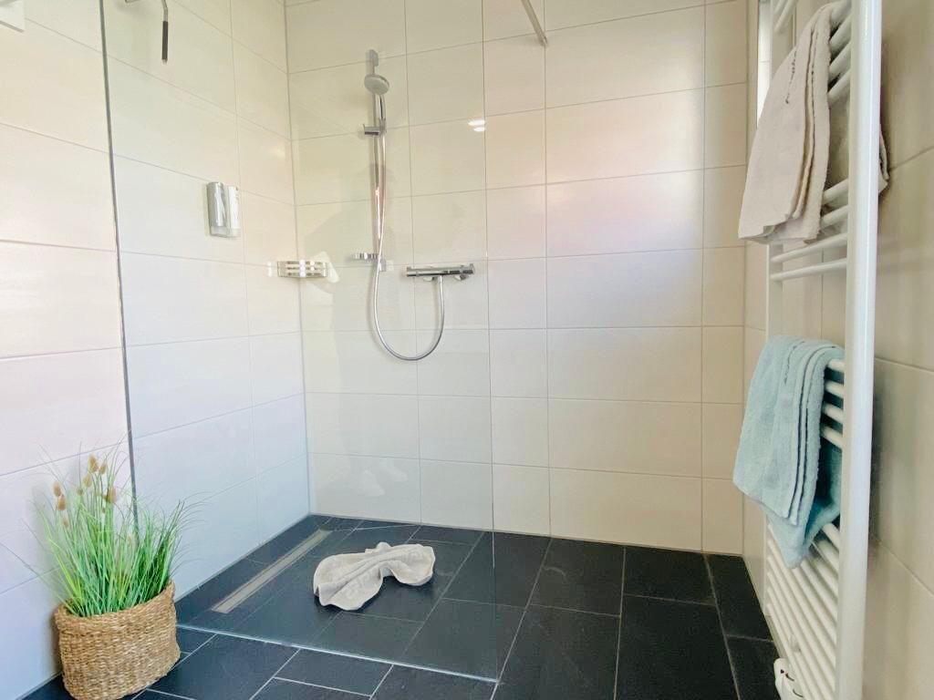 Als weiteren Luxus erwartet Sie im Badezimmer neben dem stilvollen Interieur eine ebenerdige geräumige Dusche und