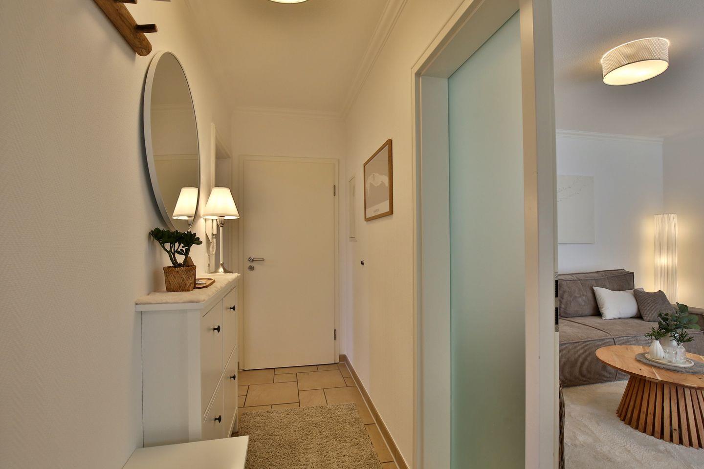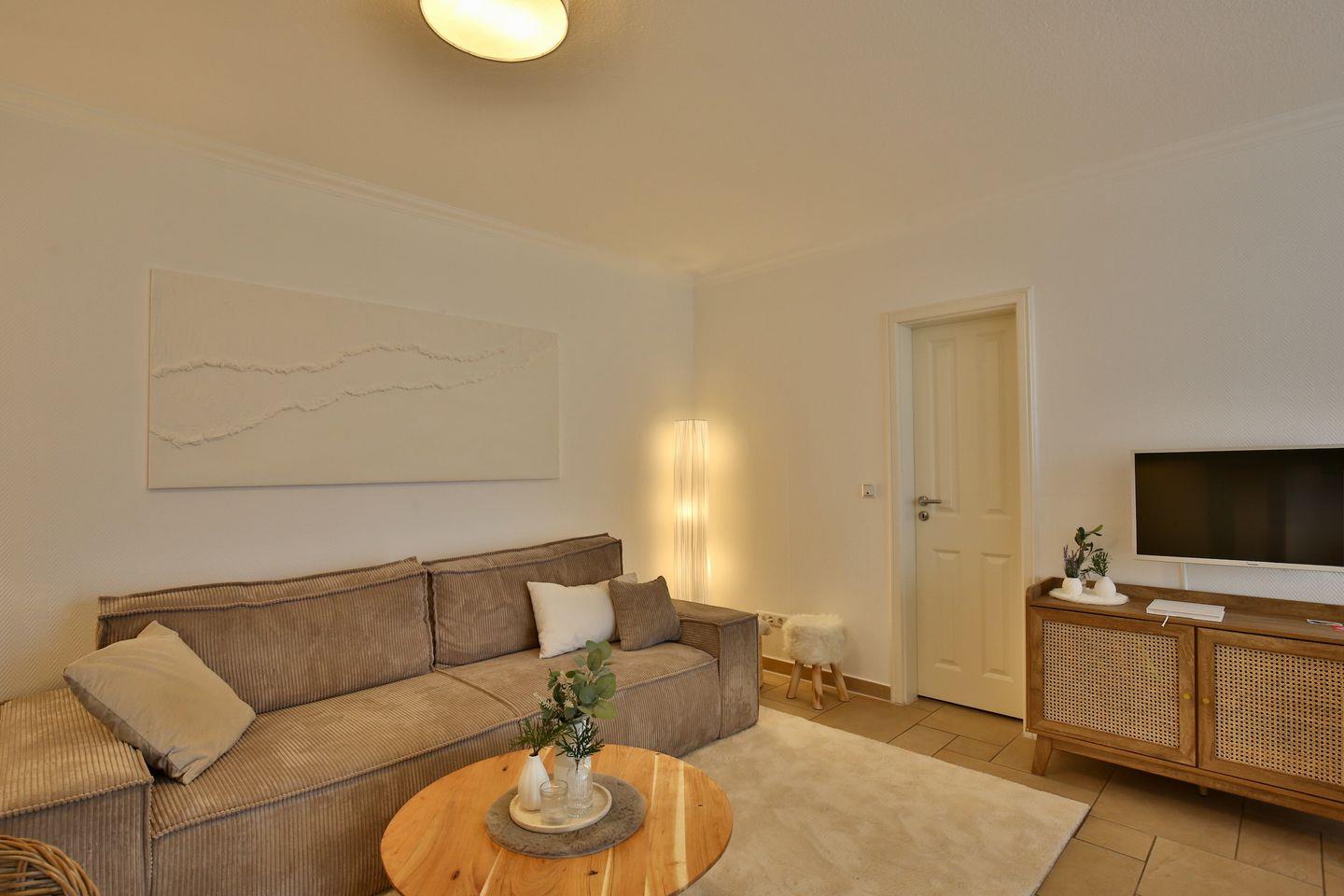 Die Wohnung ist großzügig für Sie ausgestattet und besteht aus einem stilvoll eingerichteten Wohn- und Essbereich in Kombination mit einer offenen Küchenzeile. Es stehen Ihnen zwei getrennte Schlafzimmer, ein geräumiges Bad sowie eine Terrasse mit Garten zur Verfügung.
