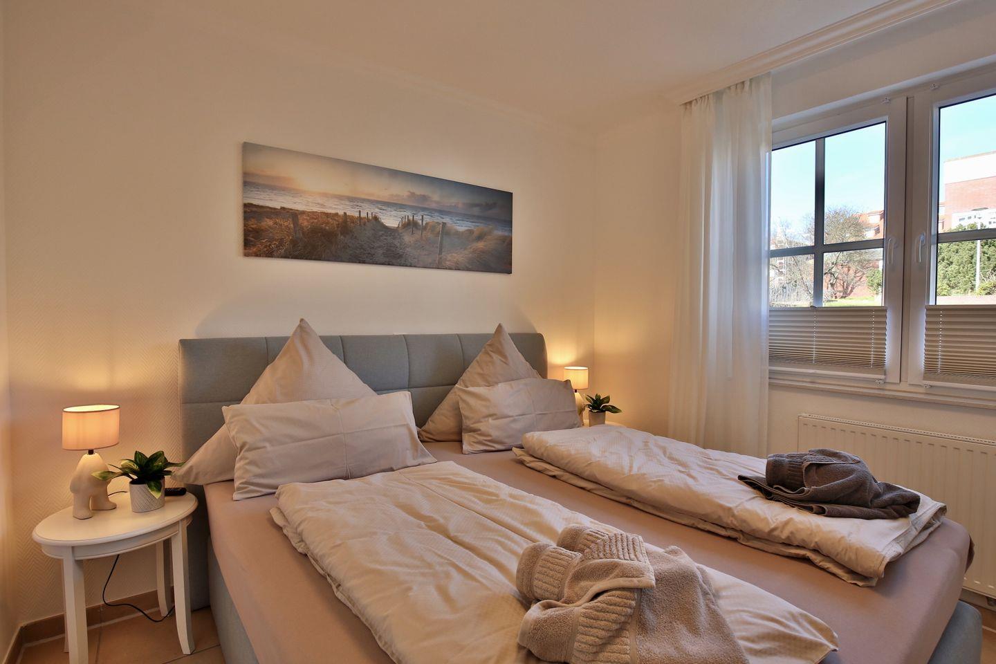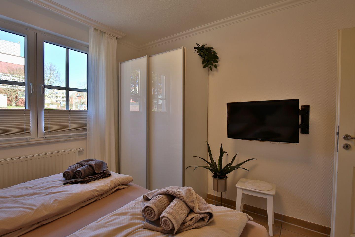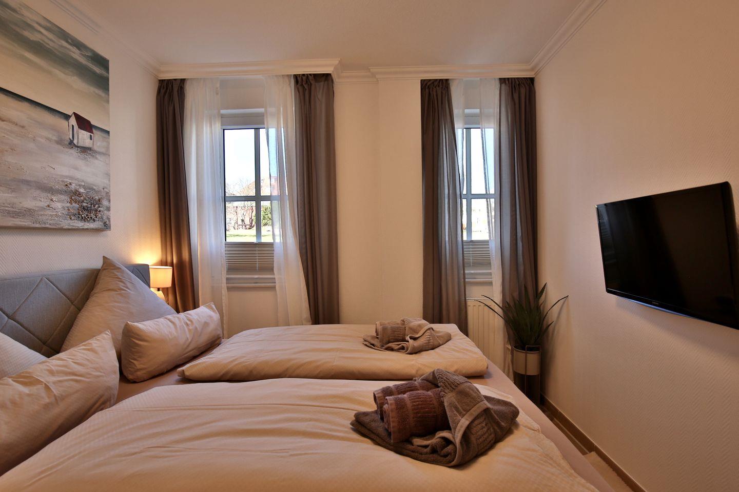 In der Ferienwohnung Villa Vivaldi stehen Ihnen zwei Schlafzimmer zur Verfügung. Beide Schlafzimmer sind mit Boxspringbetten in den Maßen 180 x 200cm ausgestattet. Neben den komfortablen Betten sind die Schlafzimmer mit Flachbildfernsehern ausgestattet und verfügen über genügend Stauraum. Zusätzlich kann auch ein Babybett in der Wohnung aufgestellt werden.
