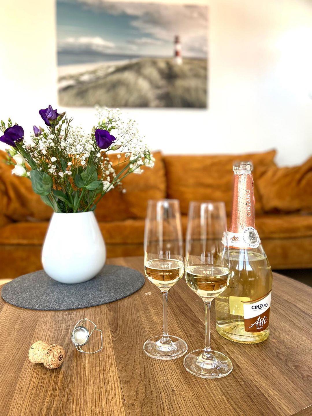 In der modern und geschmackvoll eingerichteten Ferienwohnung erwartet Sie ein einladendes Wohnambiente, das durch einen offenen Küchenbereich und ein stilvolles Wohnzimmer gekennzeichnet ist. Die hochwertige Küche ist mit allen notwendigen Utensilien ausgestattet, einschließlich eines Cerankochfeldes, Backofens, Kühlschranks, Geschirrspülers, Wasserkochers, einem Kaffeevollautomaten und einer Kaffeemaschine, sodass Sie sich selbst ein köstliches Frühstück oder ein Abendessen zubereiten können. Der angrenzende Essbereich mit einem Esstisch lädt zu gemeinsamen Mahlzeiten ein.