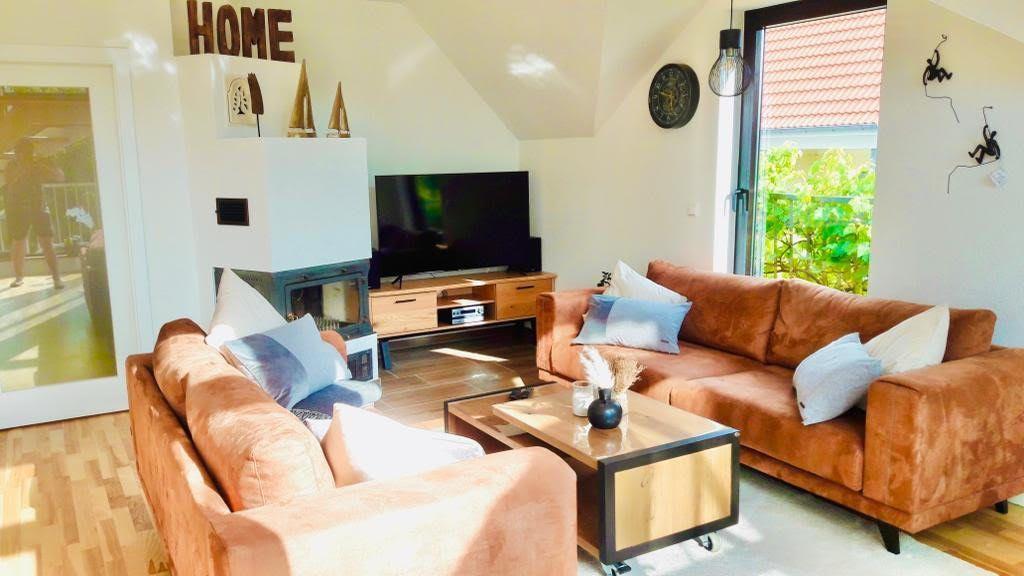 In der gemütlichen Couchecke (der Marke Henders & Hazel) dürfen Sie es sich in den Abendstunden gemütlich machen. Vor dem Kamin können Sie die Füße hochlegen und sich entspannen. Im Wohnzimmerbereich haben Sie als elektronische Unterhaltungsmedien einen großen Flachbild-Fernseher und eine Stereoanlage.