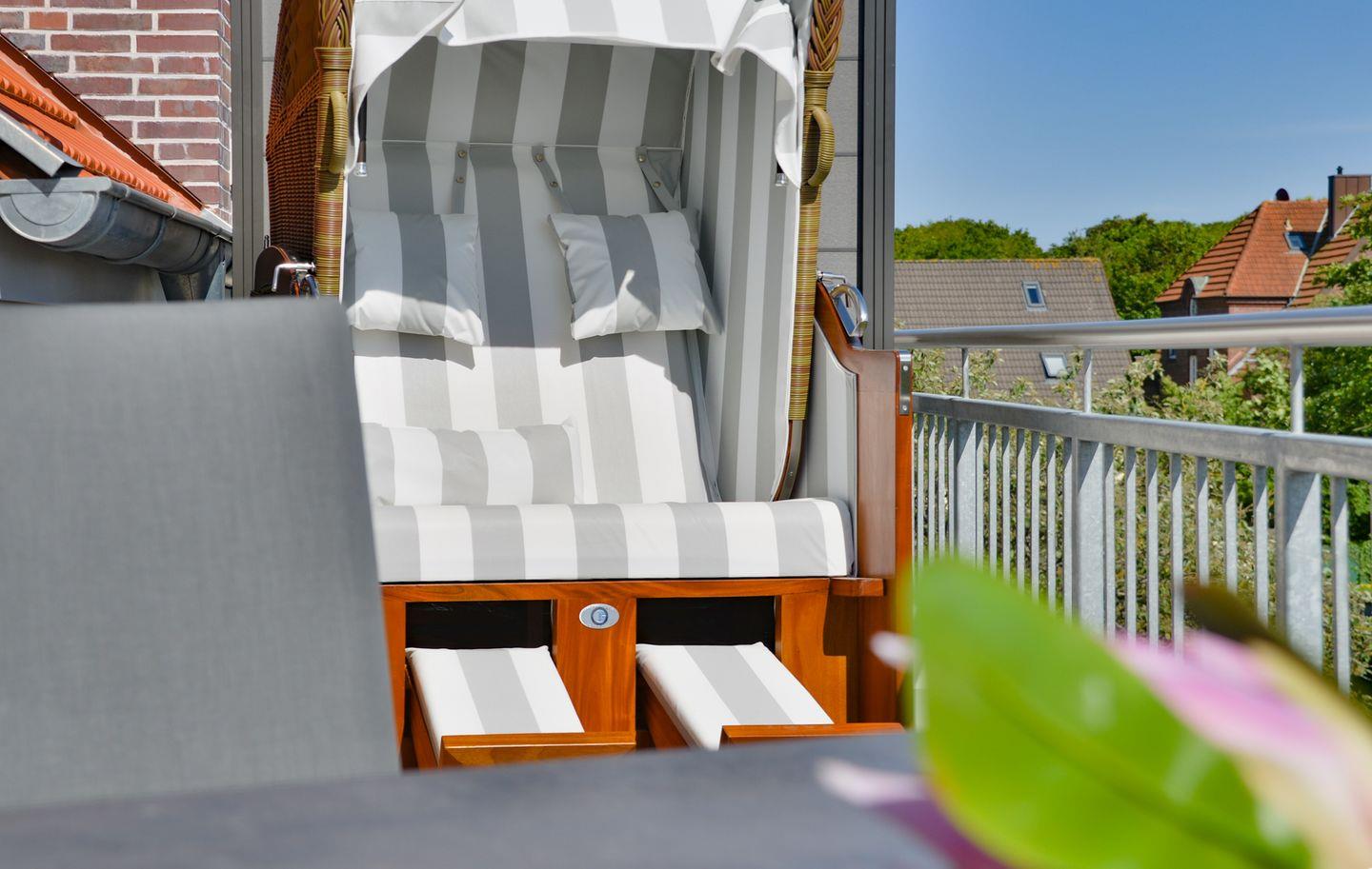 Moderne Ferienwohnung auf Wangerooge mit Blick auf den Alten Leuchtturm und zentraler Lage nahe Strand und Dorfzentrum.