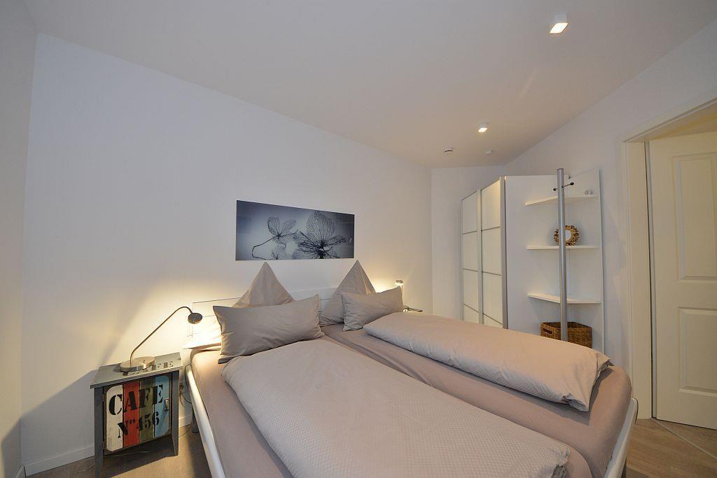 Viele kleine Akzente verleihen auch Ihrem Schlafbereich das richtige Wohlfühlatmosphäre. Das Schlafzimmer ist liebevoll für Sie gestaltet und mit einem Doppelbett (180 x 200 cm) und einem großzügigen Schrank eingerichtet.
